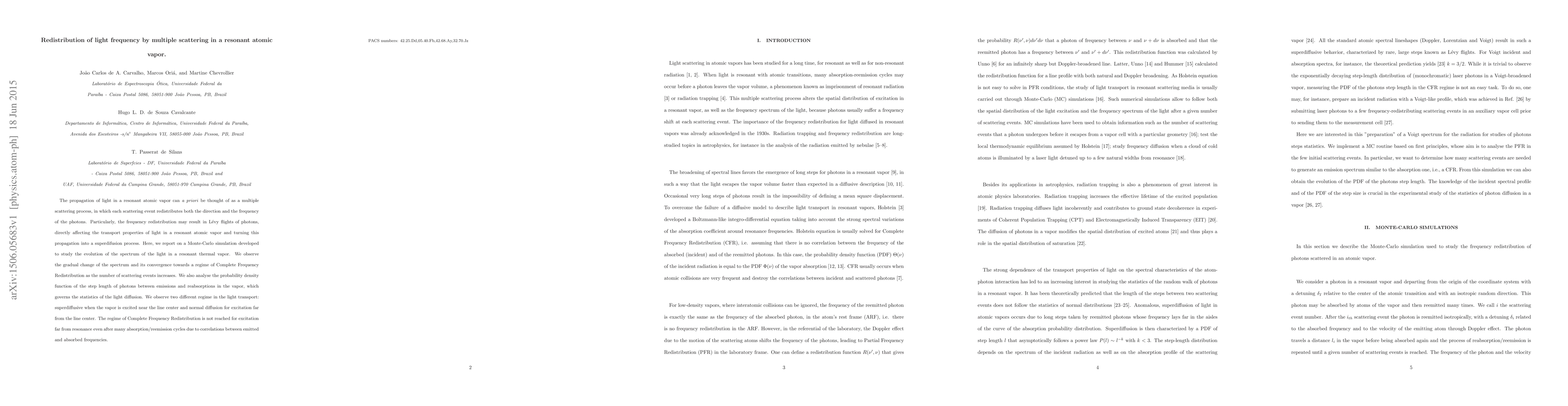 A study using Monte-Carlo simulation found that light propagation in resonant atomic vapor leads to superdiffusion when excited near the line center, but normal diffusion when far from resonance.