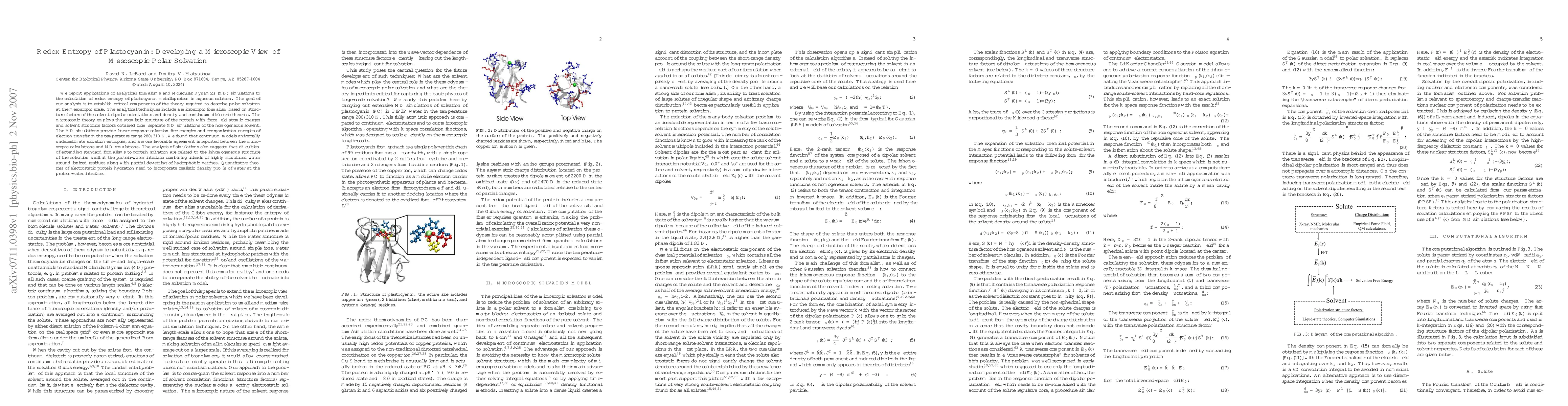 We report applications of analytical formalisms and Molecular Dynamics (MD) simulations to the calculation of redox entropy of plastocyanin metalloprotein in aqueous solution. The goal of our analysis is to establish critical components of the theory required to describe polar solvation at the mesoscopic scale. The analytical techniques include a microscopic formalism based on structure factors of the solvent dipolar orientations and density and continuum dielectric theories. The microscopic theory employs the atomistic structure of the protein with force-field atomic charges and solvent structure factors obtained from separate MD simulations of the homogeneous solvent. The MD simulations provide linear response solvation free energies and reorganization energies of electron transfer in the temperature range 280--310 K. We found that continuum models universally underestimate solvation entropies, and a more favorable agreement is reported between the microscopic calculations and MD simulations. The analysis of simulations also suggests that difficulties of extending standard formalisms to protein solvation are related to the inhomogeneous structure of the solvation shell at the protein-water interface combining islands of highly structured water around ionized residues along with partial dewetting of hydrophobic patches. Quantitative theories of electrostatic protein hydration need to incorporate realistic density profile of water at the protein-water interface.
