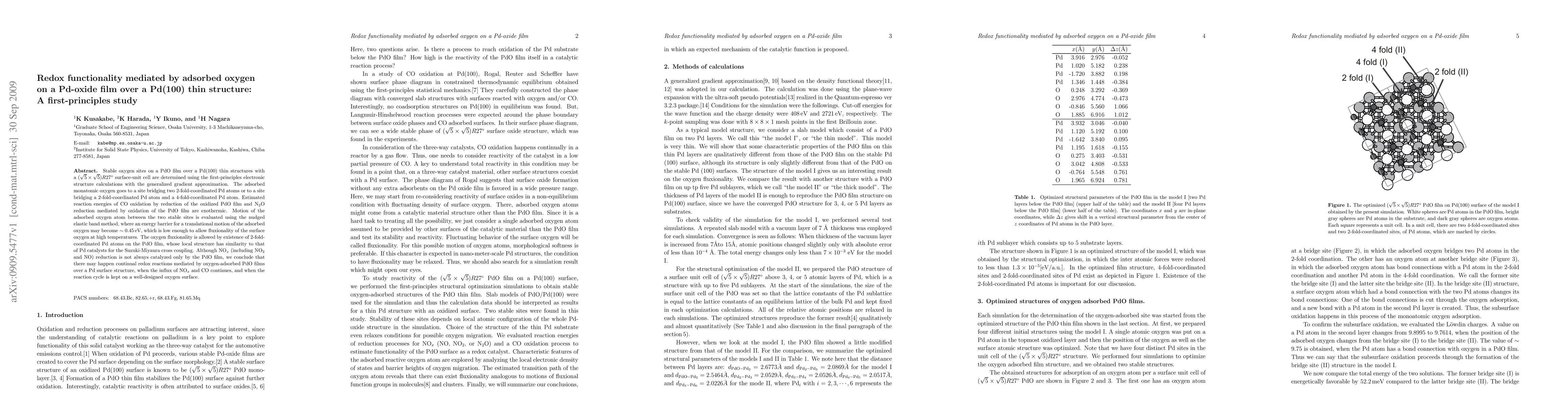 This study uses first-principles calculations to determine stable oxygen sites on a PdO film over Pd(100) and finds that adsorbed oxygen can bridge Pd atoms, facilitating exothermic redox reactions. The low energy barrier for oxygen motion suggests high-temperature fluxionality, enabling continual redox reactions mediated by the PdO film.
