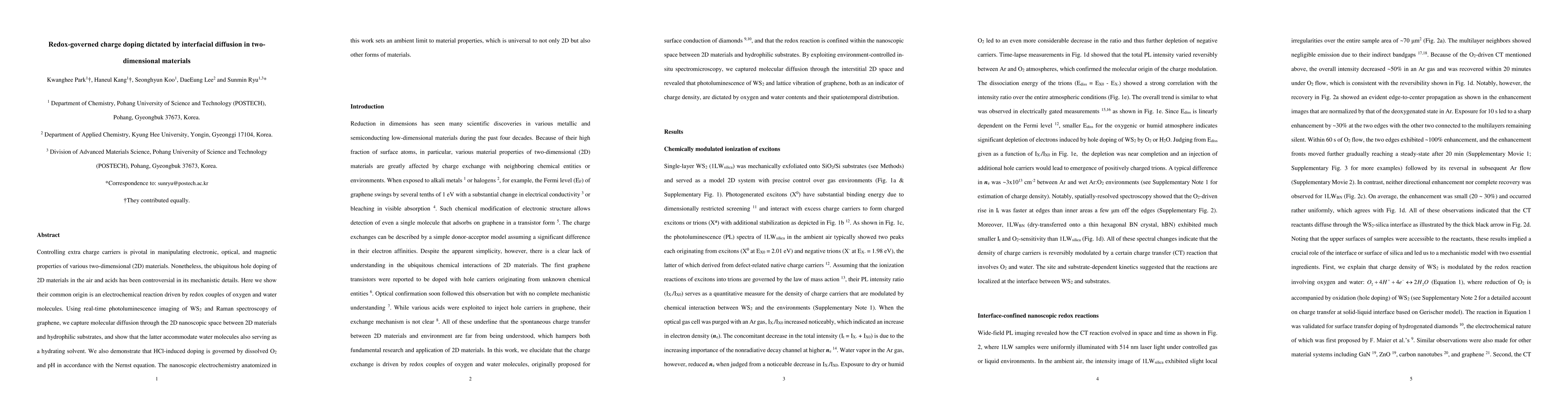 Researchers discovered that redox reactions involving oxygen and water molecules control charge doping in 2D materials, enabling manipulation of electronic properties. This finding has implications for the universal behavior of nanoscopic electrochemistry in various materials.