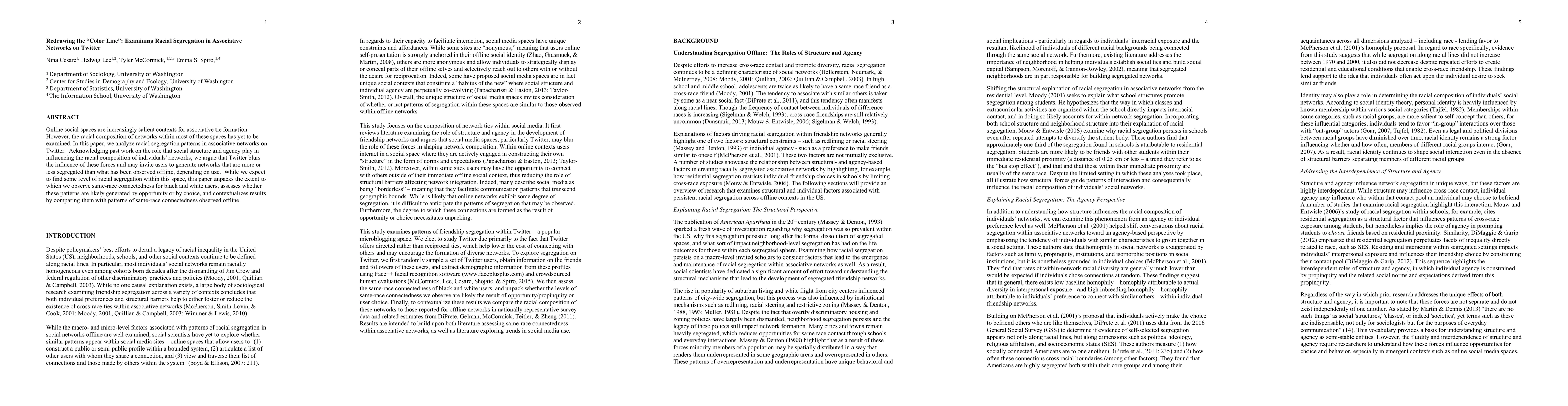 This study examines racial segregation in online associative networks on Twitter, finding that black and white users tend to connect with others of the same race, but the extent and reasons for this segregation remain unclear. The research highlights the need for further exploration of how social media platforms influence network formation.