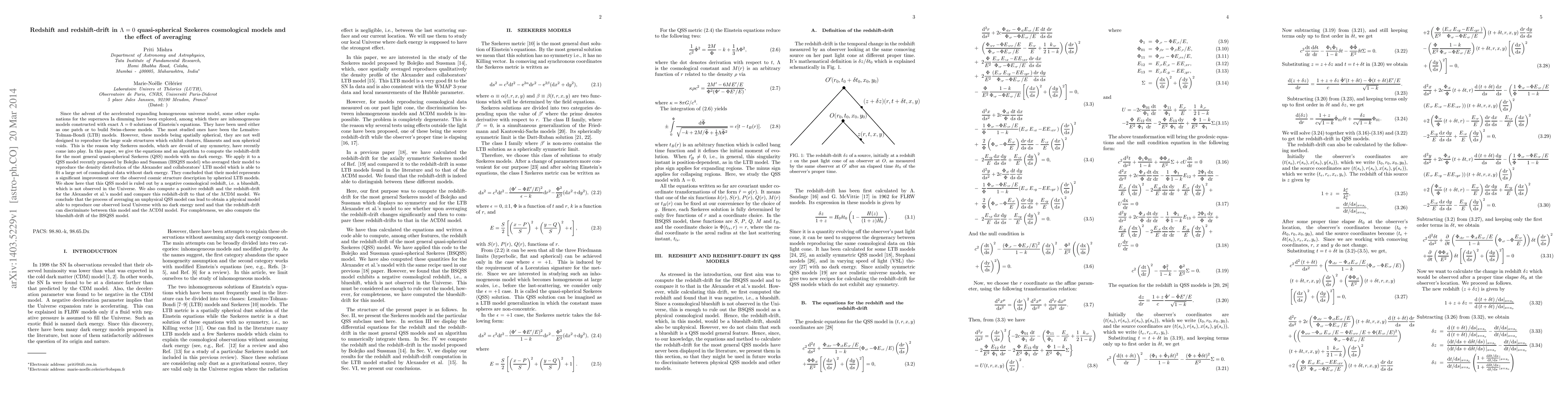 This paper investigates the redshift and redshift-drift in quasi-spherical Szekeres cosmological models without dark energy, comparing them to the ΛCDM model. It finds that an averaged Szekeres model, despite fitting local cosmological data, predicts a blueshift not observed in the Universe, while the redshift-drift can distinguish it from the ΛCDM model.
