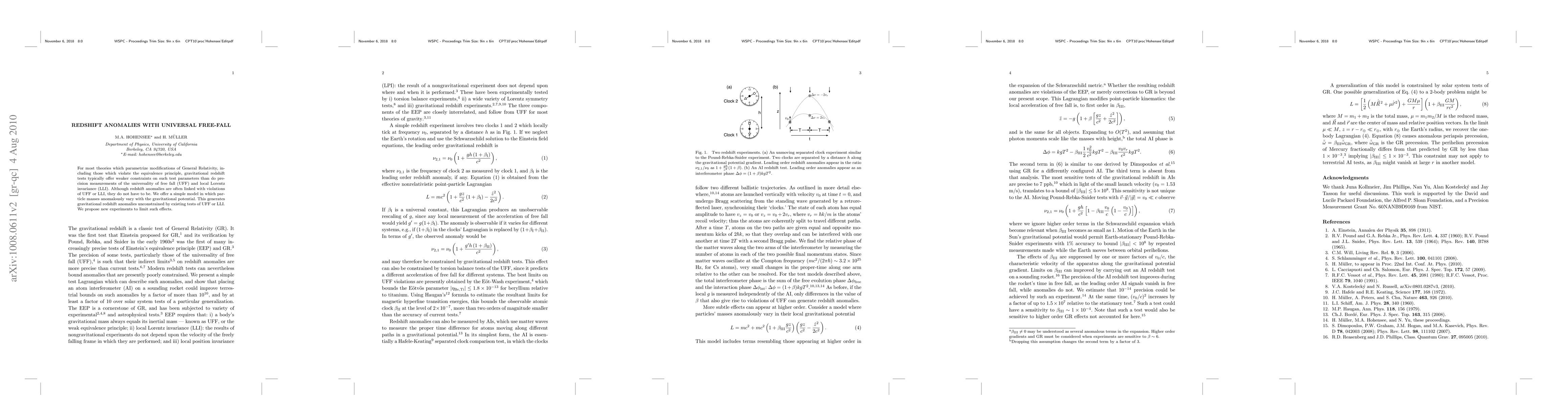 For most theories which parametrize modifications of General Relativity, including those which violate the equivalence principle, gravitational redshift tests typically offer weaker constraints on such test parameters than do precision measurements of the universality of free fall (UFF) and local Lorentz invariance (LLI). Although redshift anomalies are often linked with violations of UFF or LLI, they do not have to be. We offer a simple model in which particle masses anomalously vary with the gravitational potential. This generates gravitational redshift anomalies unconstrained by existing tests of UFF or LLI. We propose new experiments to limit such effects.