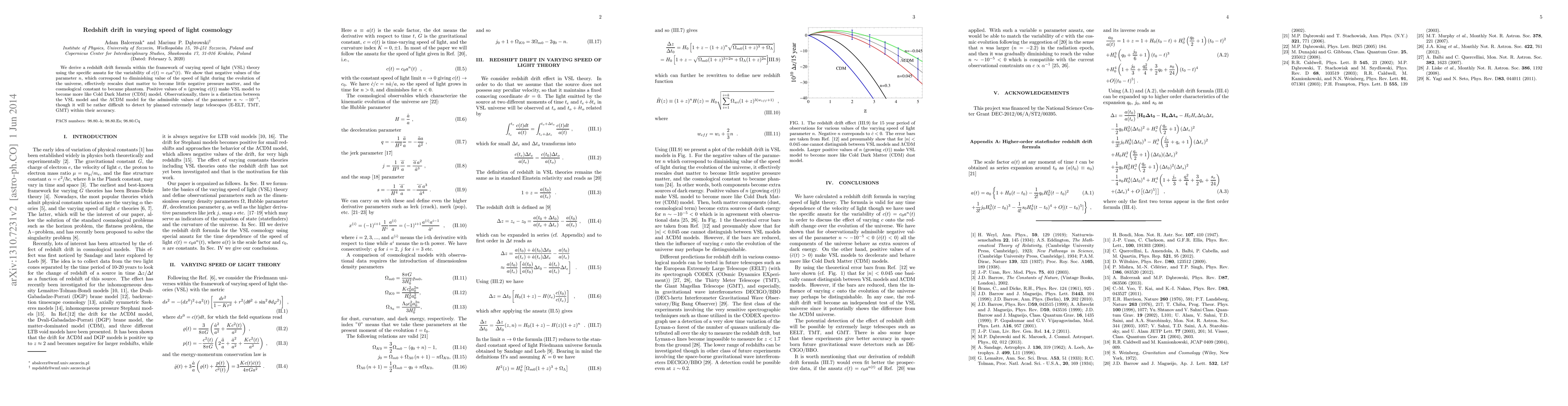 The VSL theory predicts that negative values of speed of light lead to phantom cosmological constant and little-negative pressure matter, while positive values make it more like Cold Dark Matter model. A distinction between VSL and $orall$CDM for a specific range of $n$ is theoretically possible but challenging to detect with current telescopes.