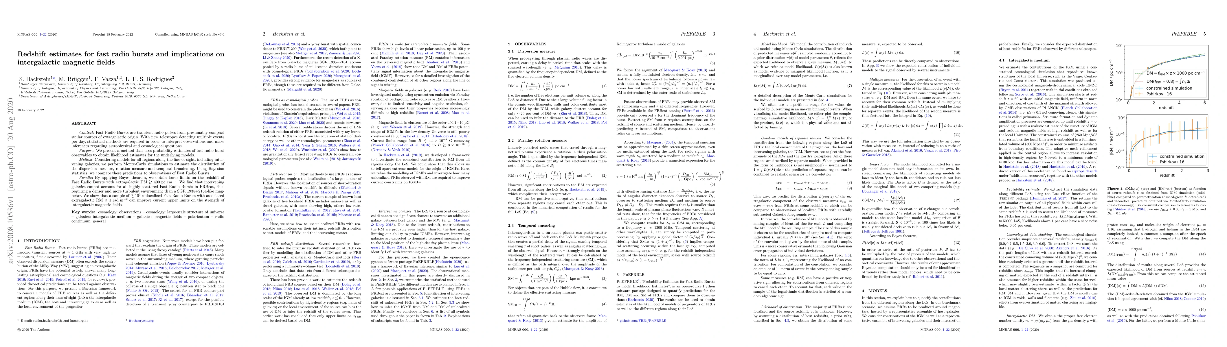 This paper develops a method to estimate the redshifts of fast radio bursts (FRBs) using Bayesian statistics and Monte-Carlo simulations, revealing that intervening galaxies cannot account for all highly scattered FRBs, and suggests that a denser intergalactic magnetic field may exist. A sample of over 1,000 unlocalized FRBs with strong extragalactic rotation measures could improve limits on intergalactic magnetic field strengths.