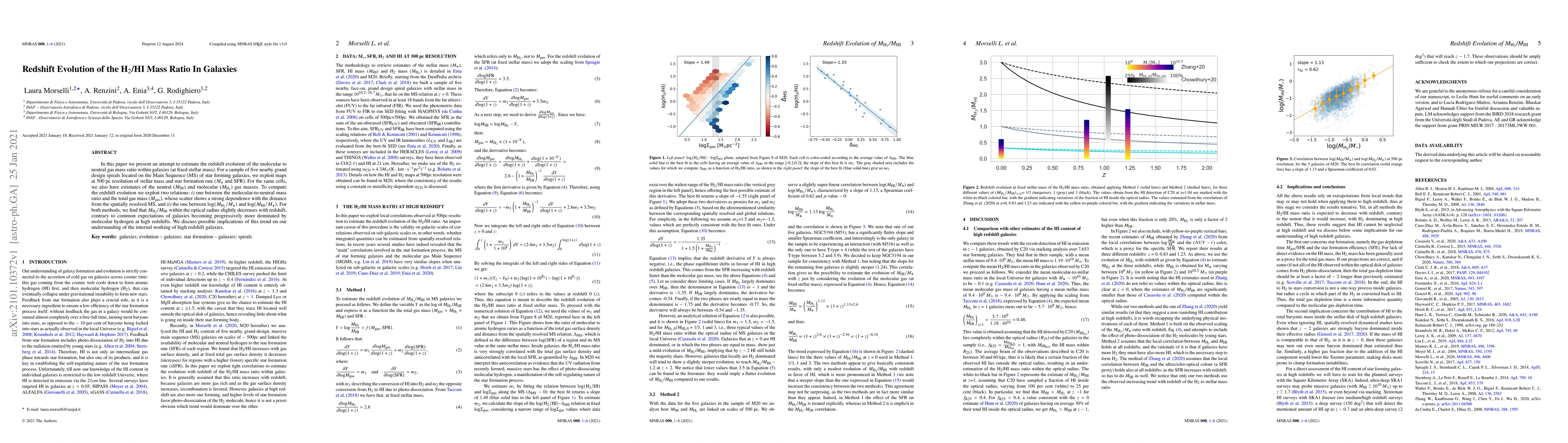 This paper investigates the redshift evolution of the molecular to neutral gas mass ratio in galaxies, finding that the ratio slightly decreases with redshift, contrary to the expectation that galaxies become more dominated by molecular hydrogen at higher redshifts. The study uses a sample of nearby grand design spirals on the star-forming Main Sequence.