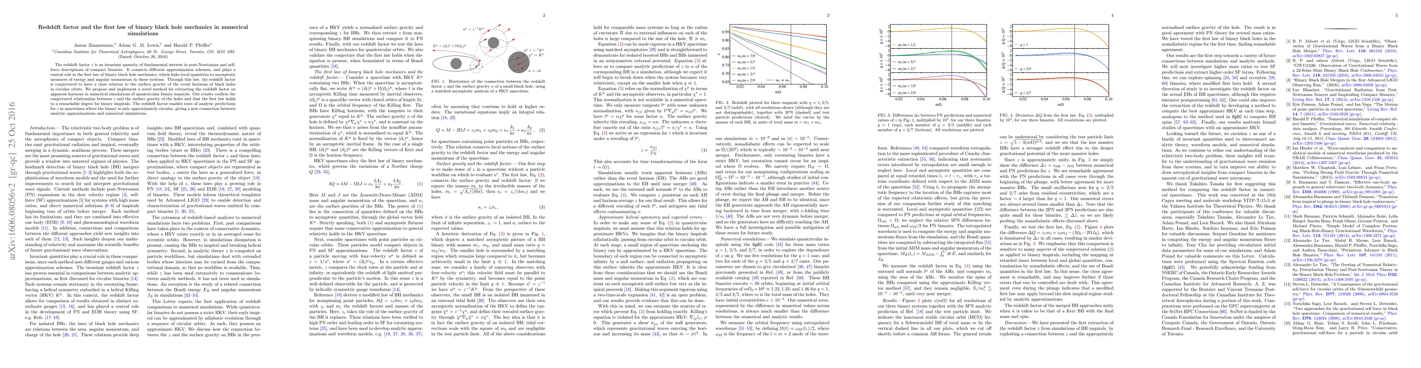 This paper proposes a new method to extract the redshift factor $z$ in numerical simulations of binary black hole inspirals, confirming its relationship to the surface gravity of black hole event horizons and validating the first law of binary black hole mechanics. This method bridges analytic predictions and numerical simulations in non-circular binary systems.