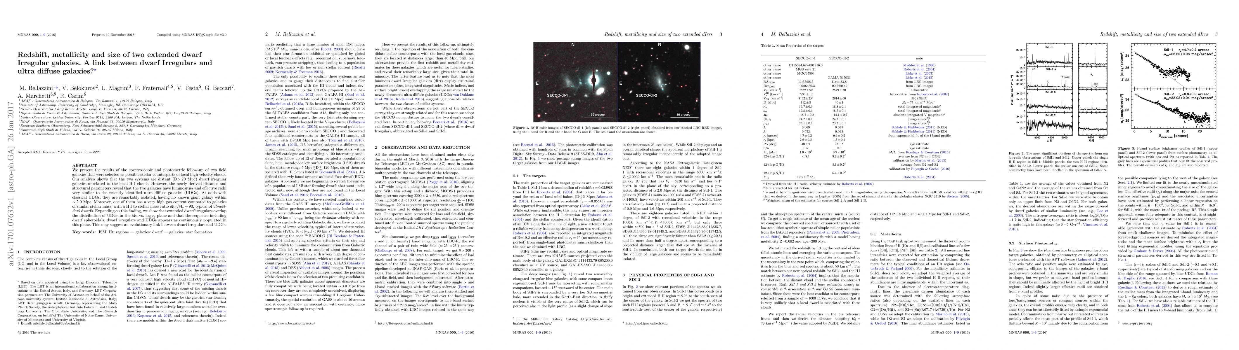 This study investigates two distant dwarf irregular galaxies, finding they share luminosity and size characteristics with Ultra Diffuse Galaxies (UDGs) despite their isolation and high gas content. The results suggest a continuous sequence from dwarf spheroidals to UDGs in the M_V vs. log(r_e) plane.