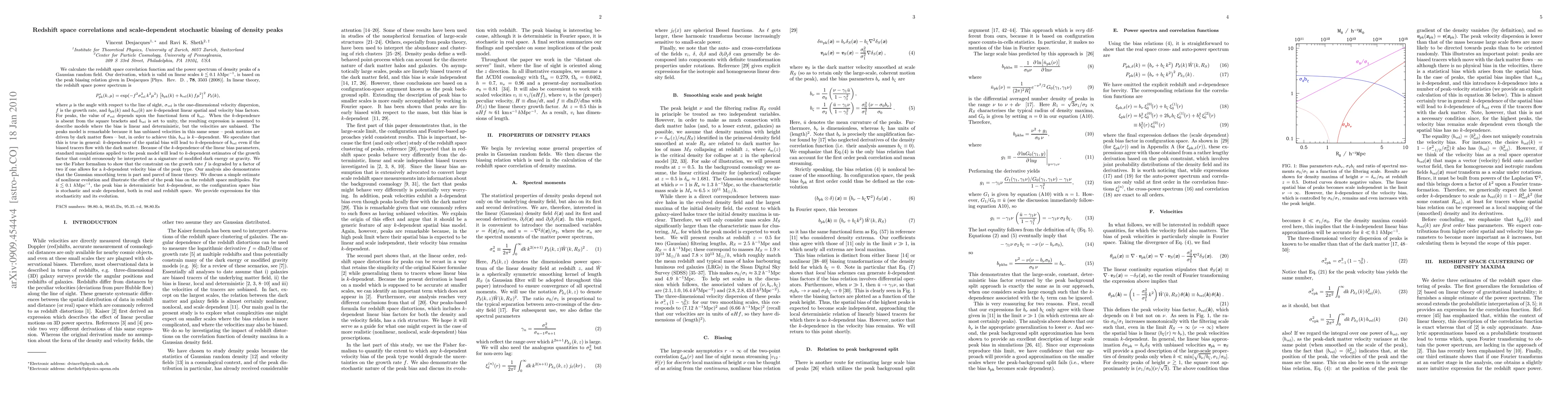 Researchers calculate redshift space correlations for Gaussian random fields, finding that k-dependent spatial bias leads to stochastic and scale-dependent density peak distributions.