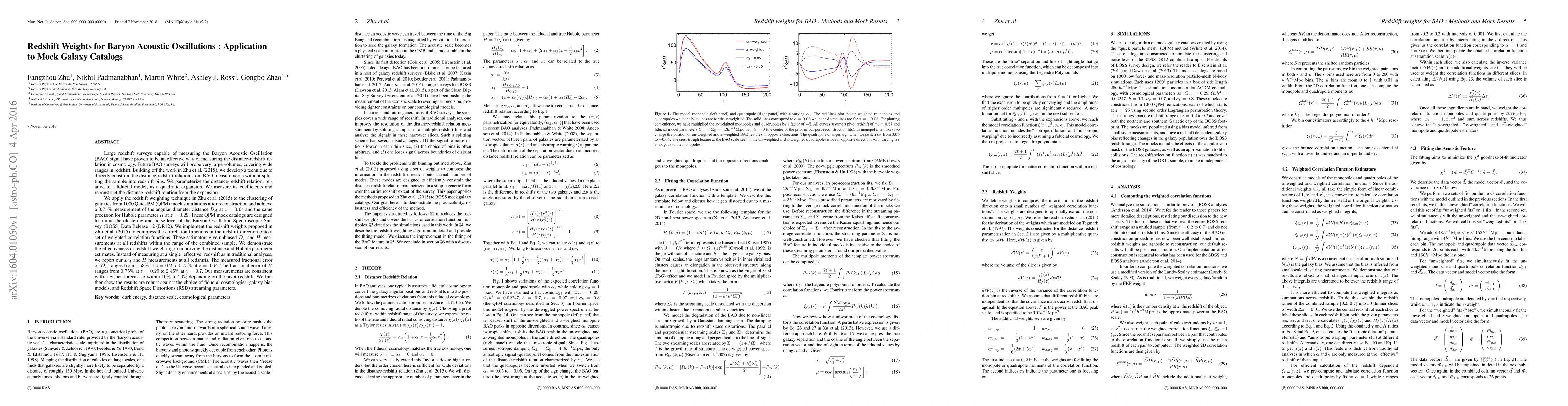 Large redshift surveys capable of measuring the Baryon Acoustic Oscillation (BAO) signal have proven to be an effective way of measuring the distance-redshift relation in cosmology. Building off the work in Zhu et al. (2015), we develop a technique to directly constrain the distance-redshift relation from BAO measurements without splitting the sample into redshift bins. We parametrize the distance-redshift relation, relative to a fiducial model, as a quadratic expansion. We measure its coefficients and reconstruct the distance-redshift relation from the expansion. We apply the redshift weighting technique in Zhu et al. (2015) to the clustering of galaxies from 1000 QuickPM (QPM) mock simulations after reconstruction and achieve a 0.75% measurement of the angular diameter distance $D_A$ at $z=0.64$ and the same precision for Hubble parameter H at $z=0.29$. These QPM mock catalogs are designed to mimic the clustering and noise level of the Baryon Oscillation Spectroscopic Survey (BOSS) Data Release 12 (DR12). We compress the correlation functions in the redshift direction onto a set of weighted correlation functions. These estimators give unbiased $D_A$ and $H$ measurements at all redshifts within the range of the combined sample. We demonstrate the effectiveness of redshift weighting in improving the distance and Hubble parameter estimates. Instead of measuring at a single 'effective' redshift as in traditional analyses, we report our $D_A$ and $H$ measurements at all redshifts. The measured fractional error of $D_A$ ranges from 1.53% at $z=0.2$ to 0.75% at $z=0.64$. The fractional error of $H$ ranges from 0.75% at $z=0.29$ to 2.45% at $z = 0.7$. Our measurements are consistent with a Fisher forecast to within 10% to 20% depending on the pivot redshift. We further show the results are robust against the choice of fiducial cosmologies, galaxy bias models, and RSD streaming parameters.