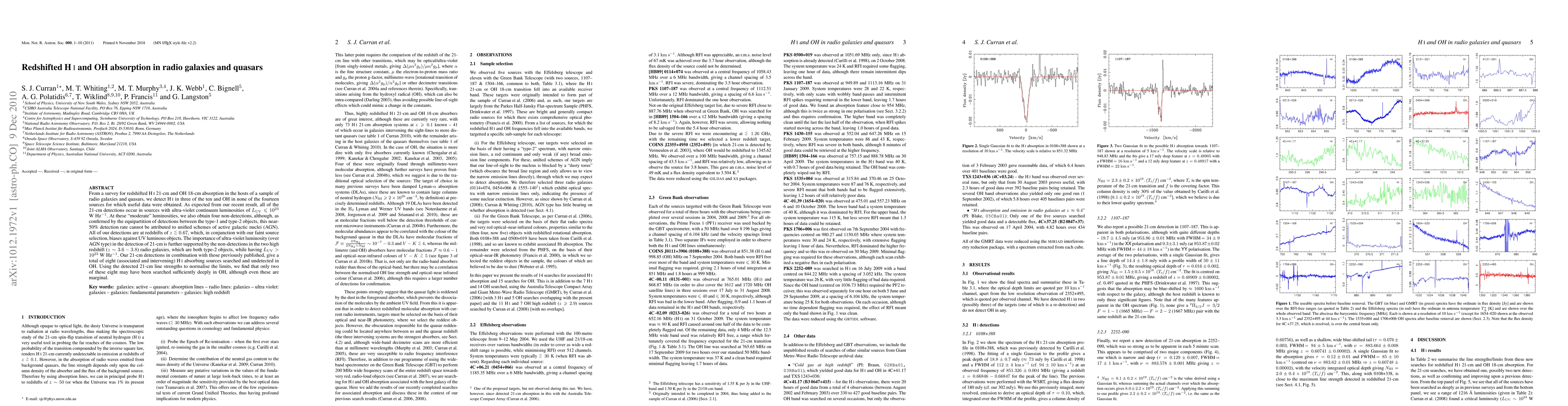 From a survey for redshifted HI 21-cm and OH 18-cm absorption in the hosts of a sample of radio galaxies and quasars, we detect HI in three of the ten and OH in none of the fourteen sources for which useful data were obtained. As expected from our recent result, all of the 21-cm detections occur in sources with ultra-violet continuum luminosities of L < 10^23 W/Hz. At these "moderate" luminosities, we also obtain four non-detections, although, as confirmed by the equipartition of detections between the type-1 and type-2 objects, this near-50% detection rate cannot be attributed to unified schemes of active galactic nuclei (AGN). All of our detections are at redshifts of z < 0.67, which, in conjunction with our faint source selection, biases against UV luminous objects. The importance of ultra-violet luminosity (over AGN type) in the detection of 21-cm is further supported by the non-detections in the two high redshift z ~ 3.6 - 3.8 radio galaxies, which are both type-2 objects, while having L > 10^23 W/Hz. Our 21-cm detections in combination with those previously published, give a total of eight (associated and intervening) HI absorbing sources searched and undetected in OH. Using the detected 21-cm line strengths to normalise the limits, we find that only two of these eight may have been searched sufficiently deeply in OH, although even these are marginal.
