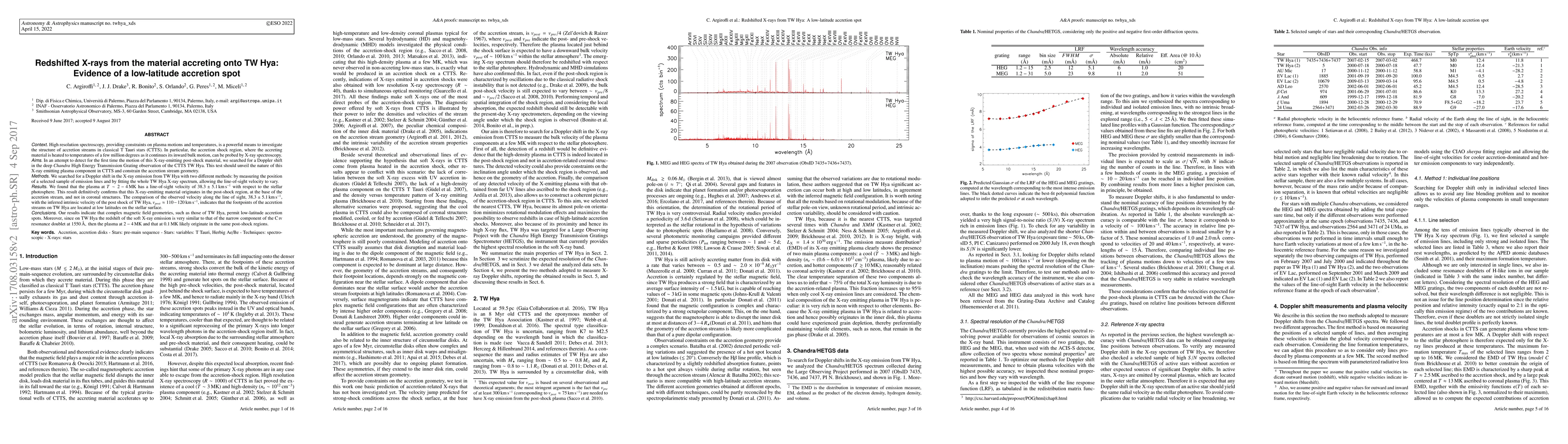 High resolution spectroscopy, providing constraints on plasma motions and temperatures, is a powerful means to investigate the structure of accretion streams in CTTS. In particular, the accretion shock region, where the accreting material is heated to temperatures of a few MK as it continues its inward bulk motion, can be probed by X-ray spectroscopy. To attempt to detect for the first time the motion of this X-ray-emitting post-shock material, we searched for a Doppler shift in the deep Chandra/HETGS observation of the CTTS TW Hya. This test should unveil the nature of this X-ray emitting plasma component in CTTS, and constrain the accretion stream geometry. We searched for a Doppler shift in the X-ray emission from TW Hya with two different methods, by measuring the position of a selected sample of emission lines, and by fitting the whole TW Hya X-ray spectrum, allowing the line-of-sight velocity to vary. We found that the plasma at T~2-4 MK has a line-of-sight velocity of 38.3+/-5.1 km/s with respect to the stellar photosphere. This result definitively confirms that this X-ray-emitting material originates in the post-shock region, at the base of the accretion stream, and not in coronal structures. The comparison of the observed velocity along the line of sight, 38.3+/-5.1 km/s, with the inferred intrinsic velocity of the post shock of TW Hya, v_post~110-120 km/s, indicates that the footpoints of the accretion streams on TW Hya are located at low latitudes on the stellar surface. Our results indicate that complex magnetic field geometries, such as that of TW Hya, permit low-latitude accretion spots. Moreover, since on TW Hya the redshift of the soft X-ray emission is very similar to that of the narrow component of the CIV resonance doublet at 1550 Ang, as found by Ardila et al. (2013), then the plasma at 2-4 MK and that at 0.1 MK likely originate in the same post-shock regions.