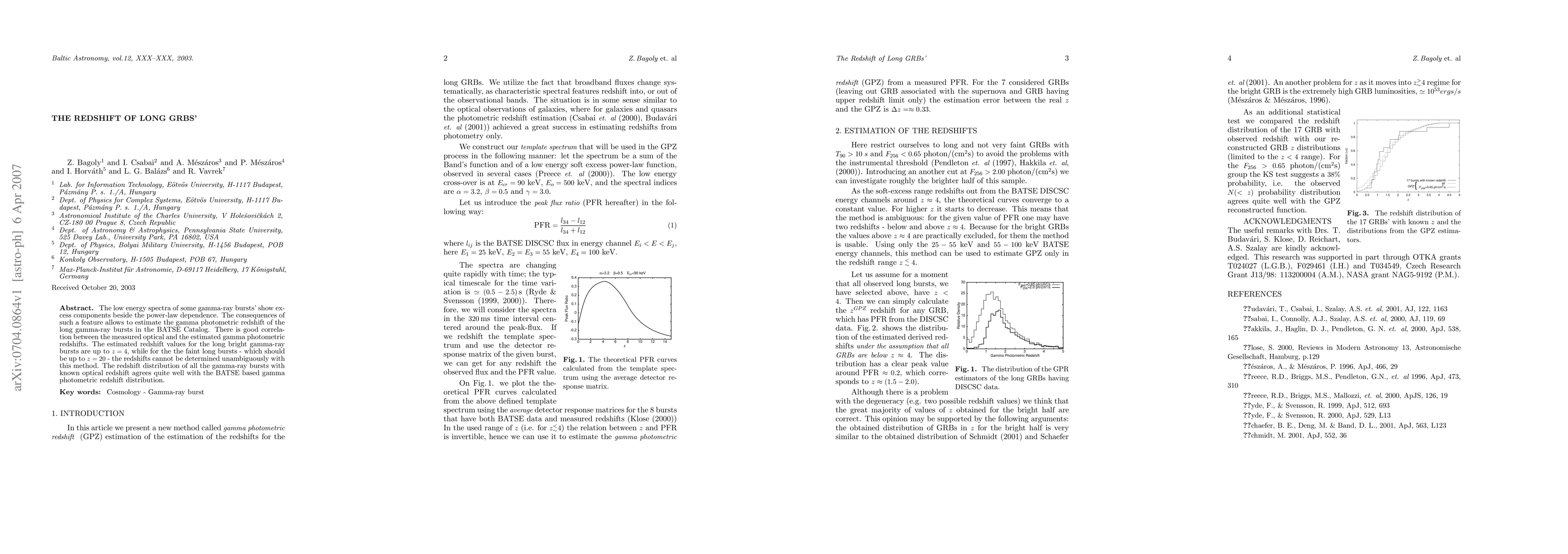The low energy spectra of some gamma-ray bursts' show excess components beside the power-law dependence. The consequences of such a feature allows to estimate the gamma photometric redshift of the long gamma-ray bursts in the BATSE Catalog. There is good correlation between the measured optical and the estimated gamma photometric redshifts. The estimated redshift values for the long bright gamma-ray bursts are up to z=4, while for the the faint long bursts - which should be up to z=20 - the redshifts cannot be determined unambiguously with this method. The redshift distribution of all the gamma-ray bursts with known optical redshift agrees quite well with the BATSE based gamma photometric redshift distribution.