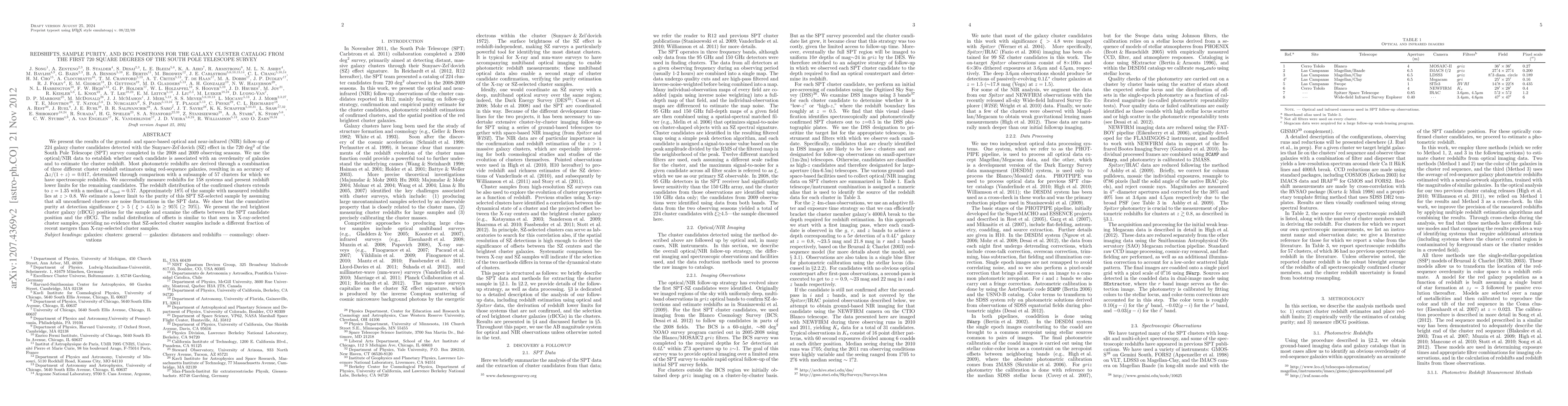 The study uses optical and near-infrared data to confirm galaxy cluster redshifts, estimating a median redshift of 0.57 and detecting clusters up to z=1.35. The sample's purity is estimated at >=95% for detection significance above 5.