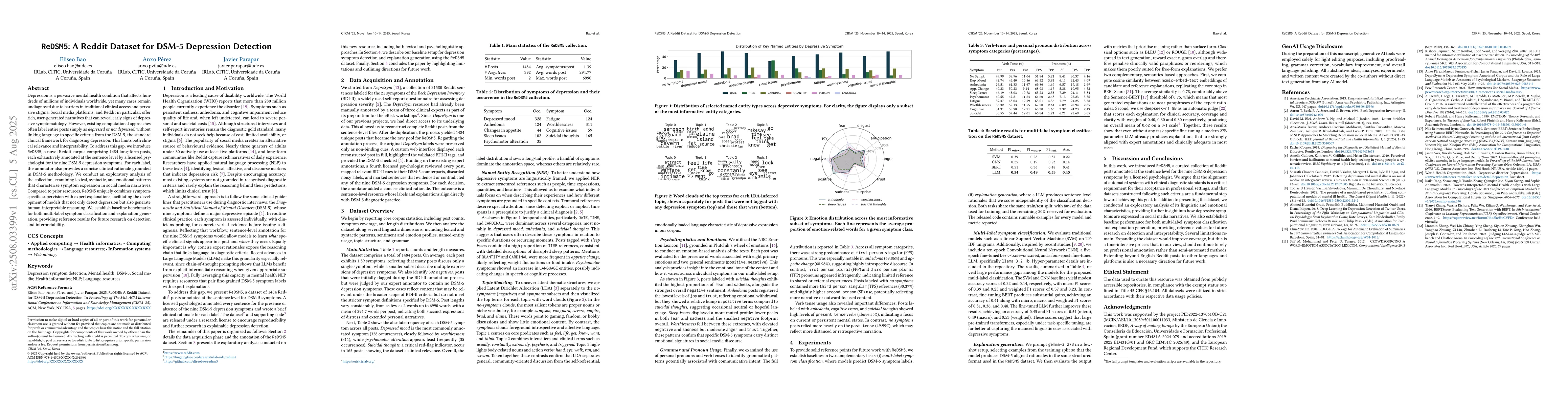 Depression is a pervasive mental health condition that affects hundreds of millions of individuals worldwide, yet many cases remain undiagnosed due to barriers in traditional clinical access and pervasive stigma. Social media platforms, and Reddit in particular, offer rich, user-generated narratives that can reveal early signs of depressive symptomatology. However, existing computational approaches often label entire posts simply as depressed or not depressed, without linking language to specific criteria from the DSM-5, the standard clinical framework for diagnosing depression. This limits both clinical relevance and interpretability. To address this gap, we introduce ReDSM5, a novel Reddit corpus comprising 1484 long-form posts, each exhaustively annotated at the sentence level by a licensed psychologist for the nine DSM-5 depression symptoms. For each label, the annotator also provides a concise clinical rationale grounded in DSM-5 methodology. We conduct an exploratory analysis of the collection, examining lexical, syntactic, and emotional patterns that characterize symptom expression in social media narratives. Compared to prior resources, ReDSM5 uniquely combines symptom-specific supervision with expert explanations, facilitating the development of models that not only detect depression but also generate human-interpretable reasoning. We establish baseline benchmarks for both multi-label symptom classification and explanation generation, providing reference results for future research on detection and interpretability.
