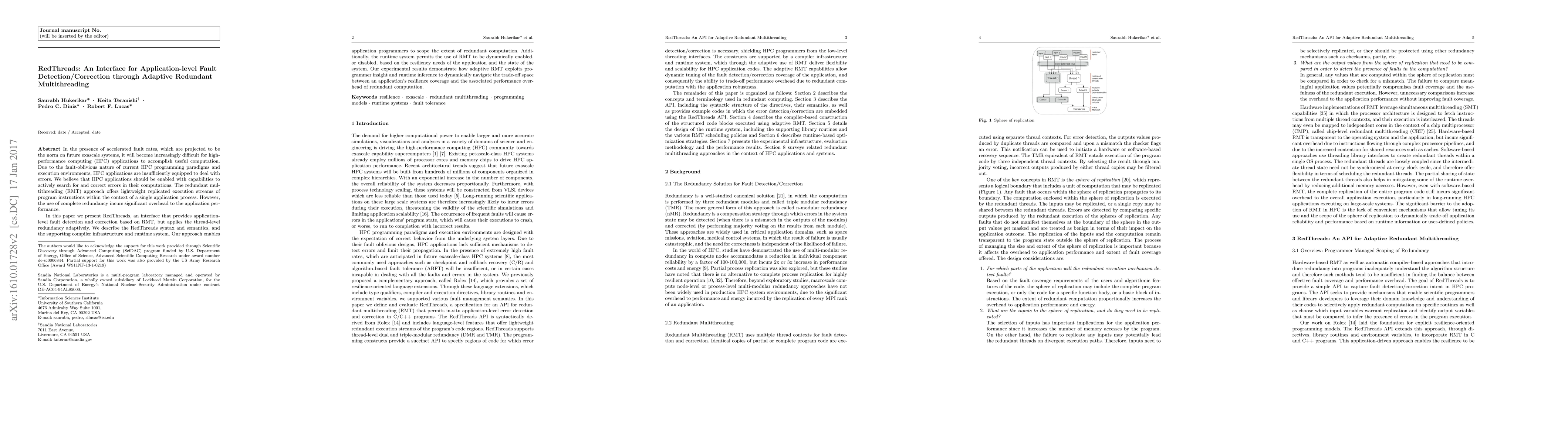 In the presence of accelerated fault rates, which are projected to be the norm on future exascale systems, it will become increasingly difficult for high-performance computing (HPC) applications to accomplish useful computation. Due to the fault-oblivious nature of current HPC programming paradigms and execution environments, HPC applications are insufficiently equipped to deal with errors. We believe that HPC applications should be enabled with capabilities to actively search for and correct errors in their computations. The redundant multithreading (RMT) approach offers lightweight replicated execution streams of program instructions within the context of a single application process. However, the use of complete redundancy incurs significant overhead to the application performance. In this paper we present RedThreads, an interface that provides application-level fault detection and correction based on RMT, but applies the thread-level redundancy adaptively. We describe the RedThreads syntax and semantics, and the supporting compiler infrastructure and runtime system. Our approach enables application programmers to scope the extent of redundant computation. Additionally, the runtime system permits the use of RMT to be dynamically enabled, or disabled, based on the resiliency needs of the application and the state of the system. Our experimental results demonstrate how adaptive RMT exploits programmer insight and runtime inference to dynamically navigate the trade-off space between an application's resilience coverage and the associated performance overhead of redundant computation.