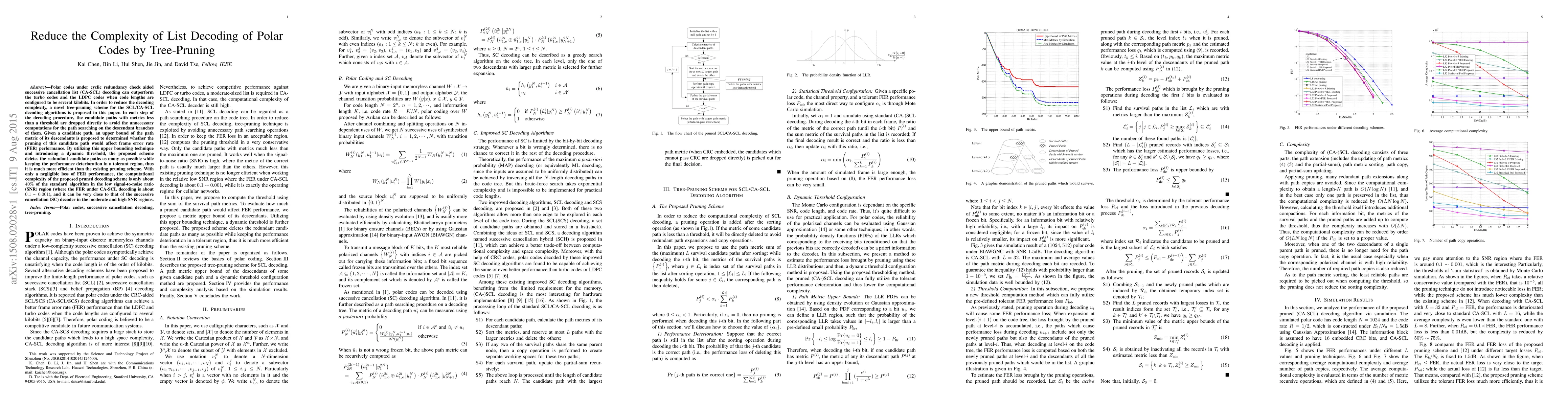 This paper proposes a tree-pruning scheme for CA-SCL decoding of polar codes, significantly reducing decoding complexity by eliminating paths with metrics below a threshold. The method uses an upper-bound technique to assess the impact on frame error rate, maintaining performance within a tolerable limit while reducing complexity to about 40% of the standard algorithm in low SNR regions, and approaching successive cancellation decoder complexity in moderate and high SNR regions.