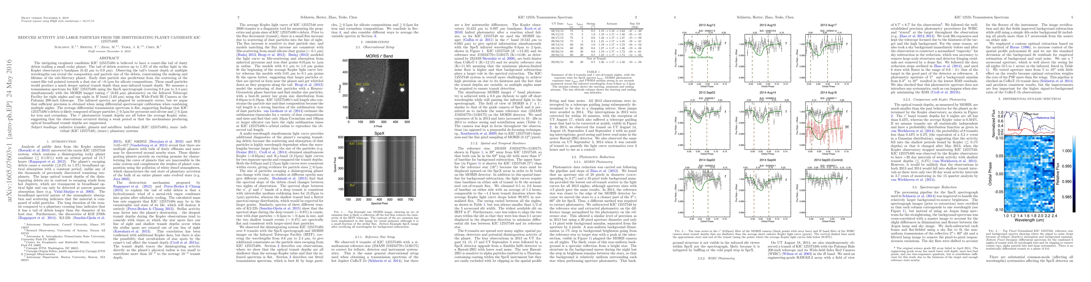 The exoplanet candidate KIC 12557548b exhibits a comet-like tail of dusty debris, with observations suggesting larger particles (> ~0.5 um) than initially predicted. The infrared spectra indicate a flat transmission spectrum, supporting the presence of larger particles and a reduced activity period.