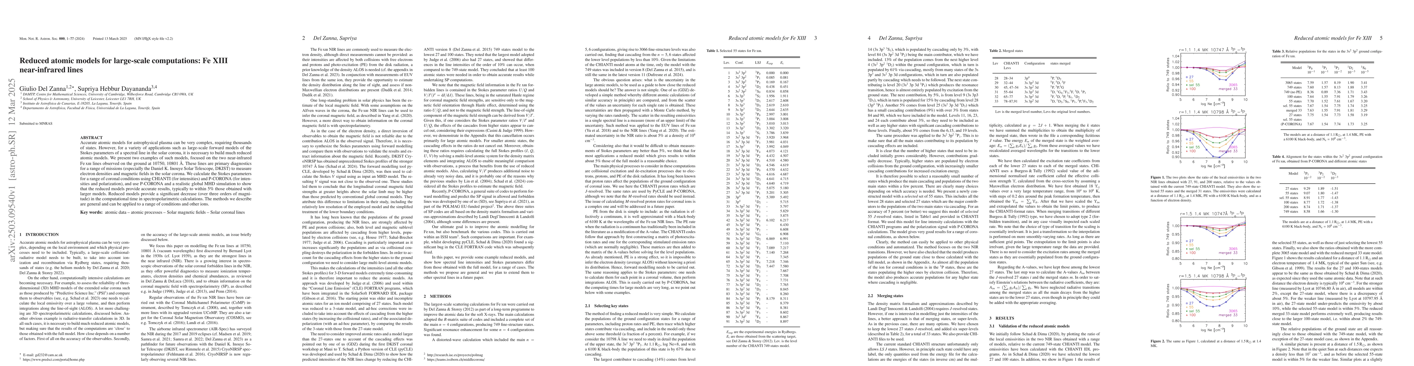 The research presents reduced atomic models for Fe XIII near-infrared lines (10750, 10801 Angstroms) using CHIANTI and P-CORONA, comparing results with larger models and demonstrating their applicability to various conditions and ions.