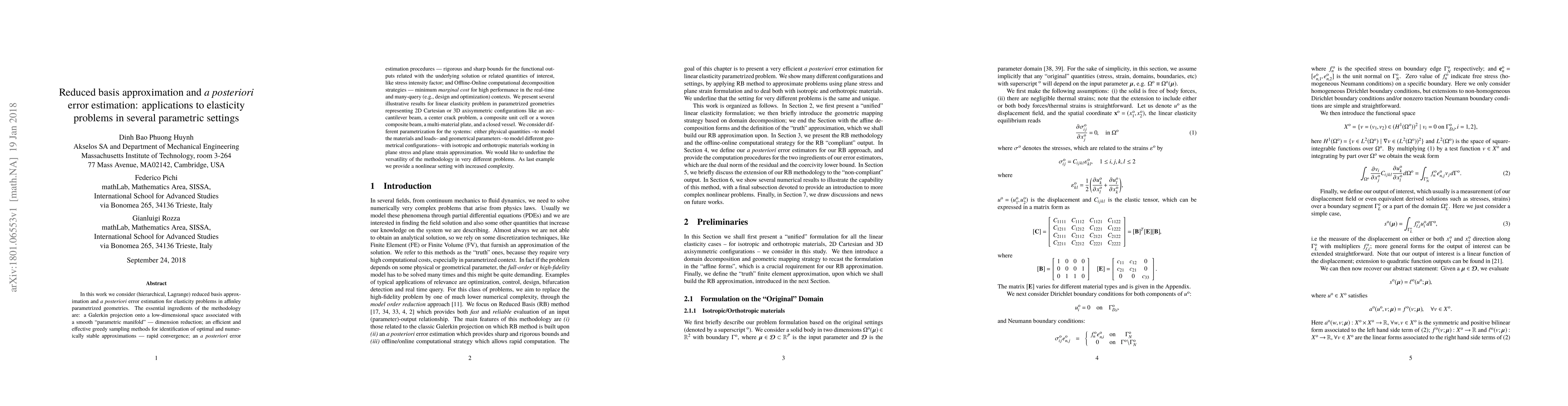 This paper explores reduced basis approximation and a posteriori error estimation for elasticity problems in parametric settings, employing a Galerkin projection for dimension reduction and efficient greedy sampling methods. It demonstrates the methodology's versatility across various linear and nonlinear elasticity problems, including 2D and 3D configurations, with rigorous error bounds and efficient offline-online computational strategies.