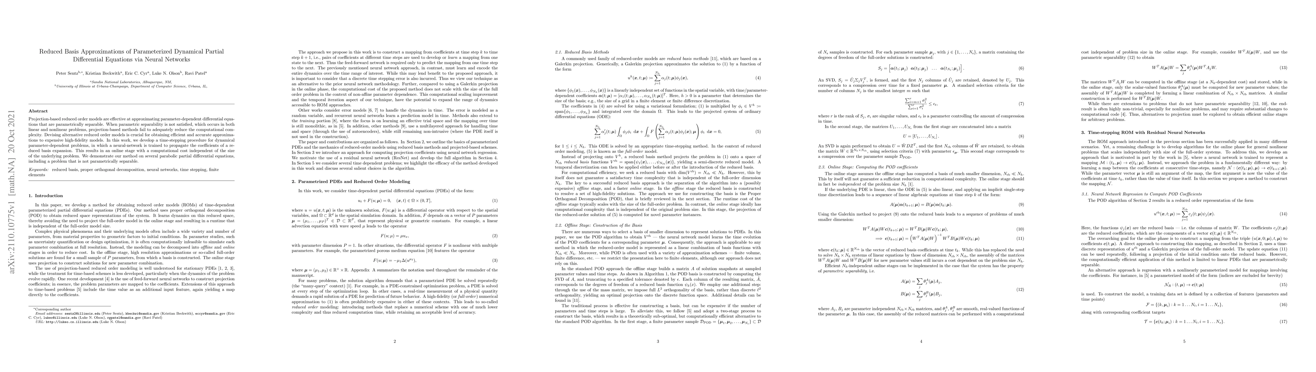 This paper proposes a neural network-based reduced order model for approximating complex parameterized dynamical partial differential equations when traditional projection-based methods fail. The method involves training a neural network to propagate reduced basis coefficients, achieving an online stage with constant computational cost regardless of problem size.