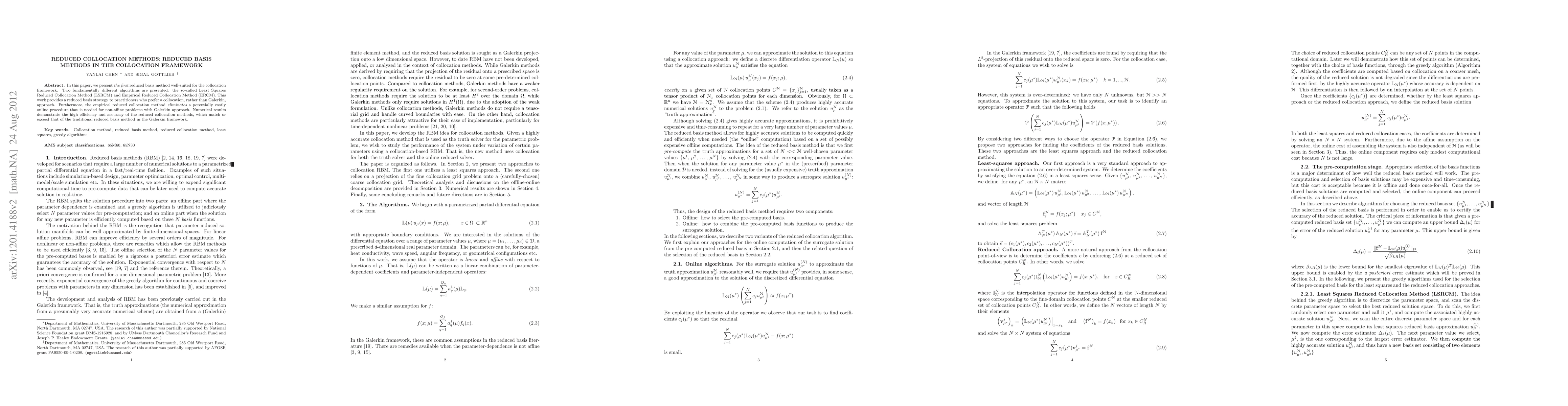 This paper introduces reduced basis methods tailored for the collocation framework, presenting the Least Squares Reduced Collocation Method (LSRCM) and the Empirical Reduced Collocation Method (ERCM). These methods offer high efficiency and accuracy comparable to traditional Galerkin-based methods, especially benefiting non-affine problems by eliminating costly online procedures.