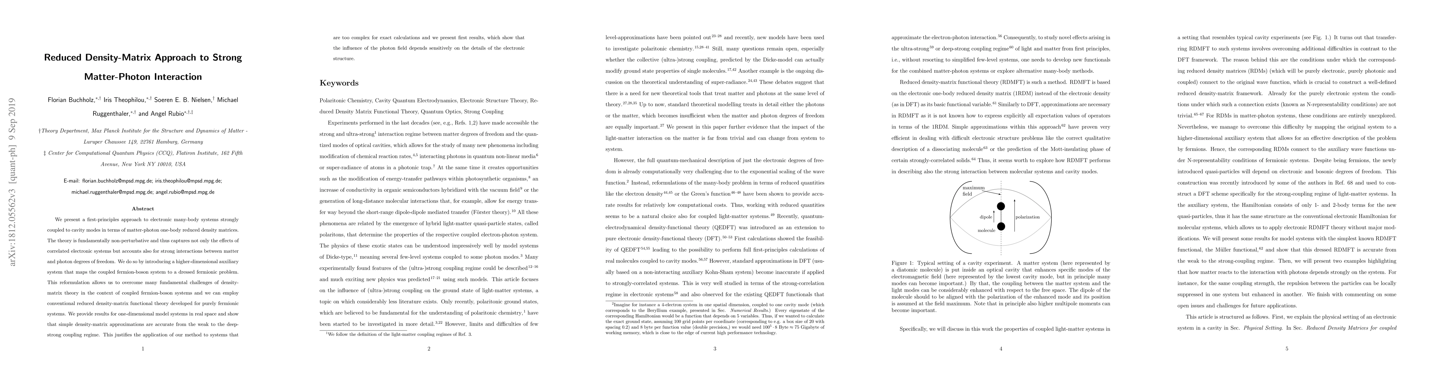This paper introduces a non-perturbative approach to study strong matter-photon interactions using one-body reduced density matrices, offering a new method to handle coupled fermion-boson systems and demonstrating its effectiveness through one-dimensional model systems. The method's accuracy across coupling regimes supports its application to complex, intractable systems.