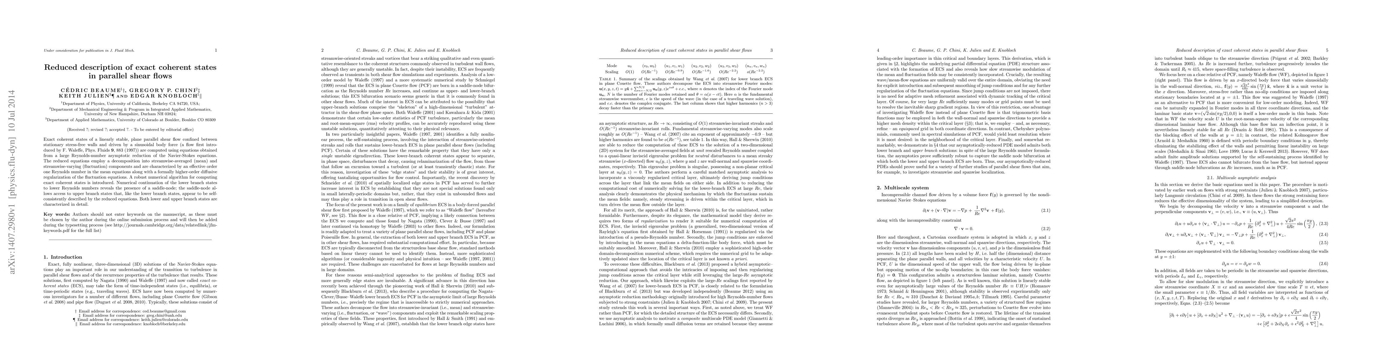 This paper computes exact coherent states of a plane parallel shear flow using a large Reynolds-number asymptotic reduction of the Navier-Stokes equations. It introduces a robust numerical method and reveals the presence of saddle-node bifurcations, allowing detailed characterization of both lower and upper branch states.