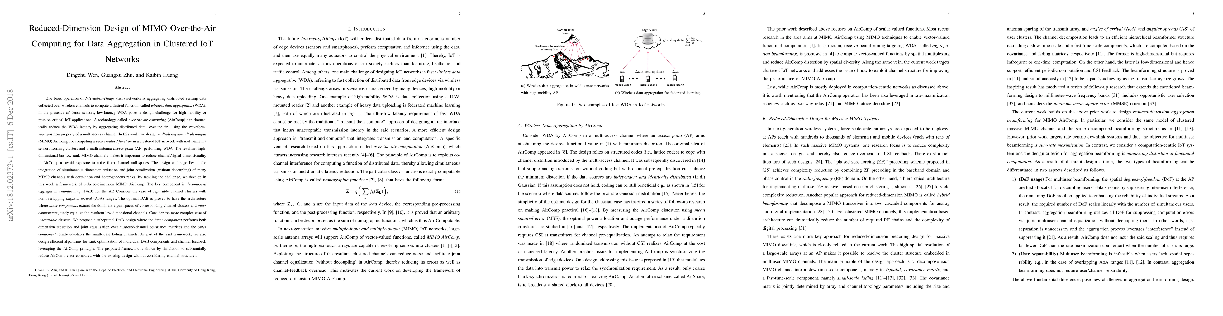 This paper proposes a reduced-dimension multiple-input-multiple-output (MIMO) over-the-air computing (AirComp) framework for wireless data aggregation in clustered IoT networks. It introduces decomposed-aggregation-beamforming (DAB) to manage high-dimensional but low-rank MIMO channels, optimizing inner components for dominant eigen-space extraction and outer components for joint equalization.