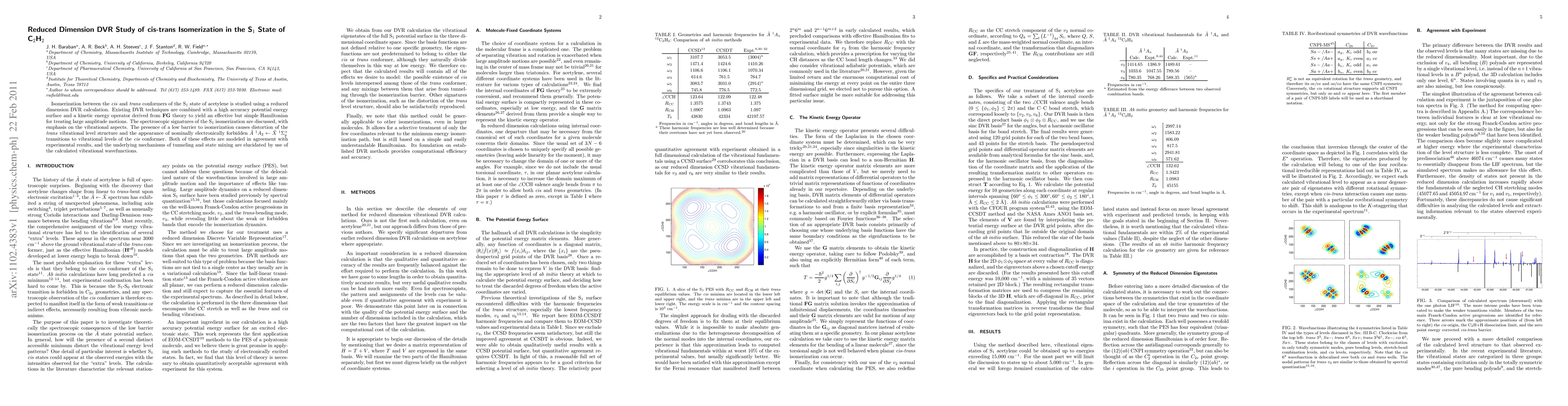 This study employs reduced dimension DVR calculations to investigate the cis-trans isomerization in the S1 state of acetylene, revealing a low barrier causing distortion of trans vibrational levels and forbidden electronic transitions to cis conformers, with mechanisms of tunneling and state mixing elucidated via calculated vibrational wavefunctions.