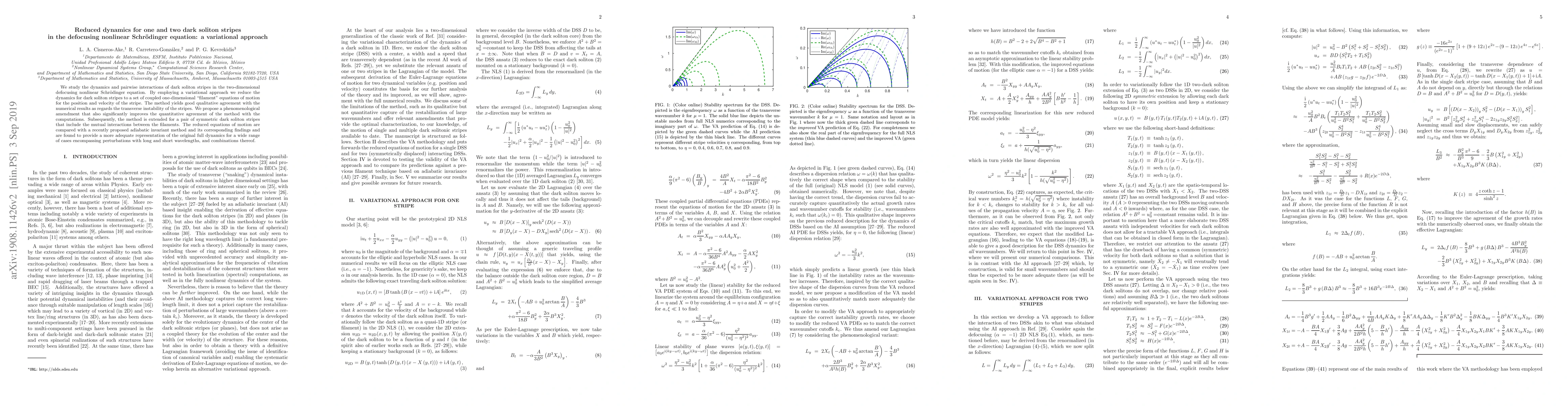 Researchers developed a simplified approach to study dark soliton stripes in nonlinear Schr"odinger equations, achieving good agreement with numerical results and outperforming another method for certain cases.
