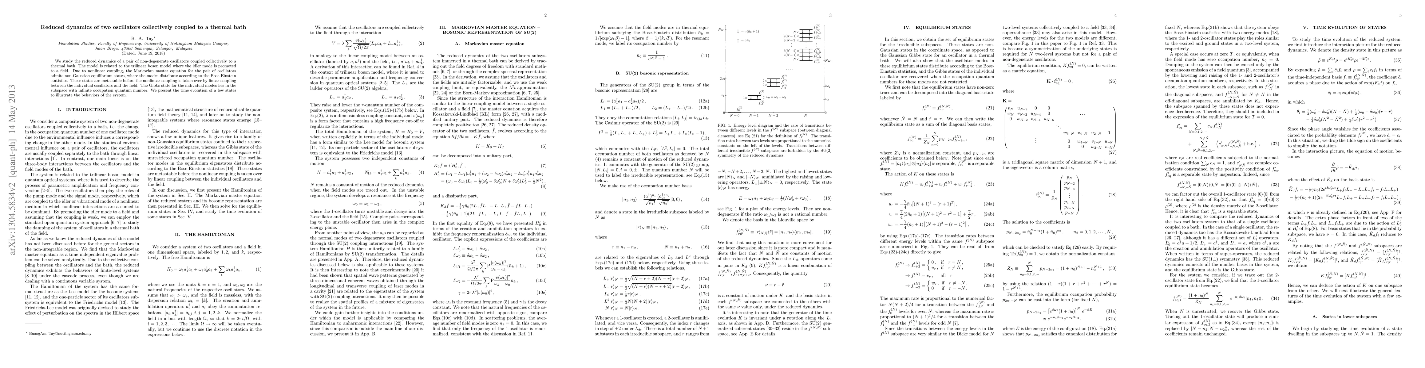 We study the reduced dynamics of a pair of non-degenerate oscillators coupled collectively to a thermal bath. The model is related to the trilinear boson model where the idler mode is promoted to a field. Due to nonlinear coupling, the Markovian master equation for the pair of oscillators admits non-Gaussian equilibrium states, where the modes distribute according to the Bose-Einstein statistics. These states are metastable before the nonlinear coupling is taken over by linear coupling between the individual oscillators and the field. The Gibbs state for the individual modes lies in the subspace with infinite occupation quantum number. We present the time evolution of a few states to illustrate the behaviors of the system.