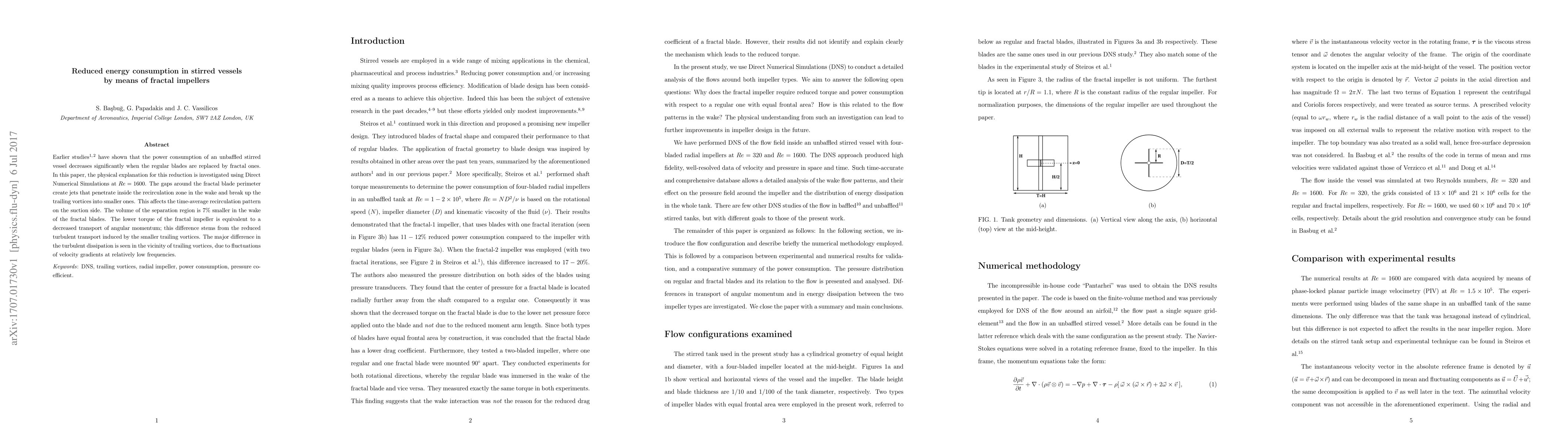 Researchers found that fractal impellers reduce energy consumption in stirred vessels by breaking up trailing vortices into smaller ones, leading to a 7% decrease in the separation region's volume.