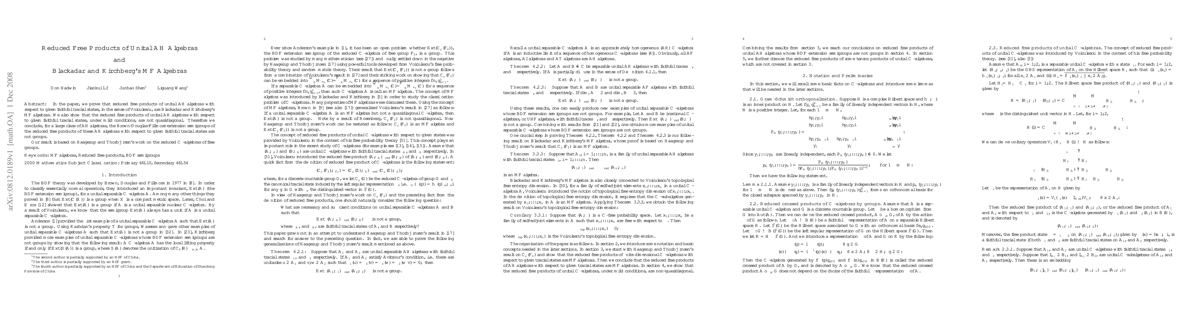 In the paper, we prove that reduced free products of unital AH algebras with respect to given faithful tracial states, in the sense of Voiculescu, are Blackadar and Kirhcberg's MF algebras. We also show that the reduced free products of unital AH algebras with respect to given faithful tracial states, under mild conditions, are not quasidiagonal. Therefore we conclude, for a large class of AH algebras, the Brown-Douglas-Fillmore extension semigroups of the reduced free products of these AH algebras with respect to given faithful tracial states are not groups. Our result is based on Haagerup and Thorbj{\o}rsen's work on the reduced C$^*$-algebras of free groups.