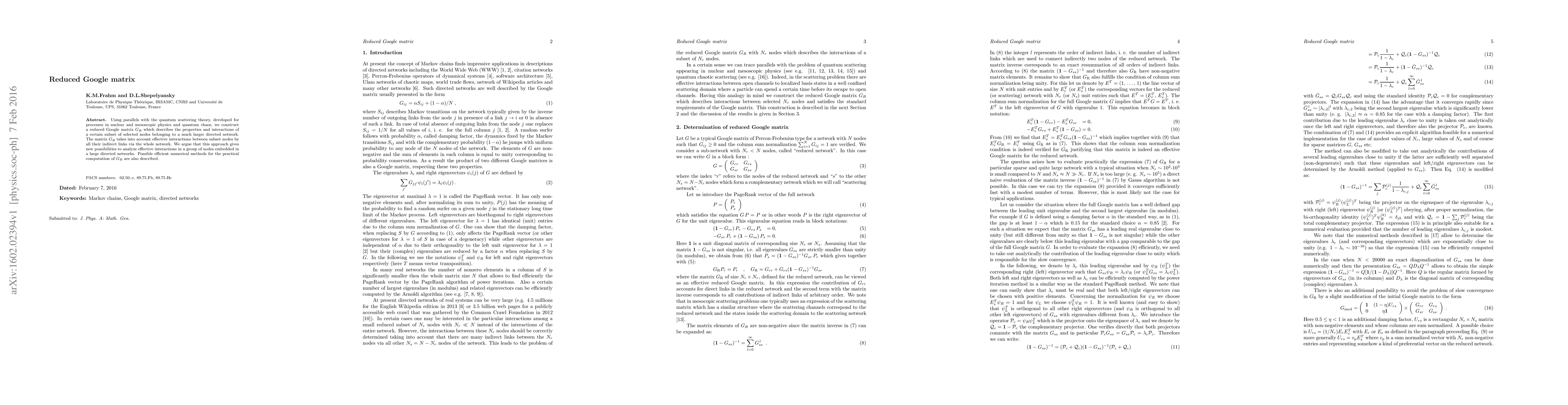 Researchers developed a new method to analyze interactions within a subset of nodes in a large directed network, called the Reduced Google matrix $G_R$. This approach provides new possibilities for analyzing effective interactions between groups of nodes in complex networks.