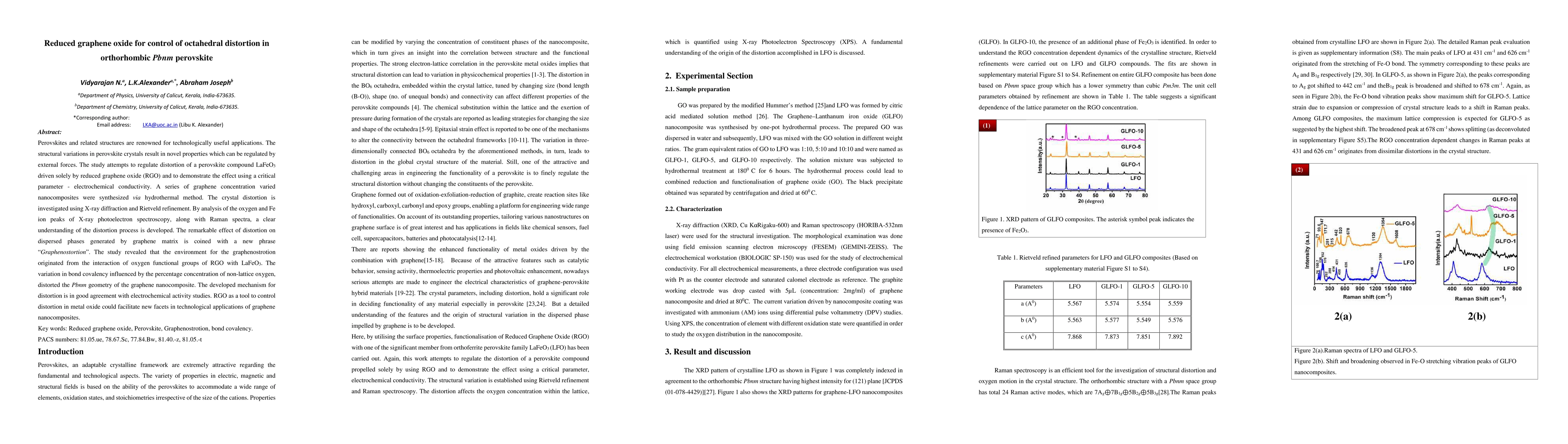 This study investigates the use of reduced graphene oxide (RGO) to control octahedral distortion in orthorhombic perovskite LaFeO3, demonstrating significant effects on electrochemical conductivity. The research reveals a new concept termed "graphenostrotion," showing that RGO interactions with LaFeO3 lead to structural changes, potentially enhancing technological applications of graphene nanocomposites.