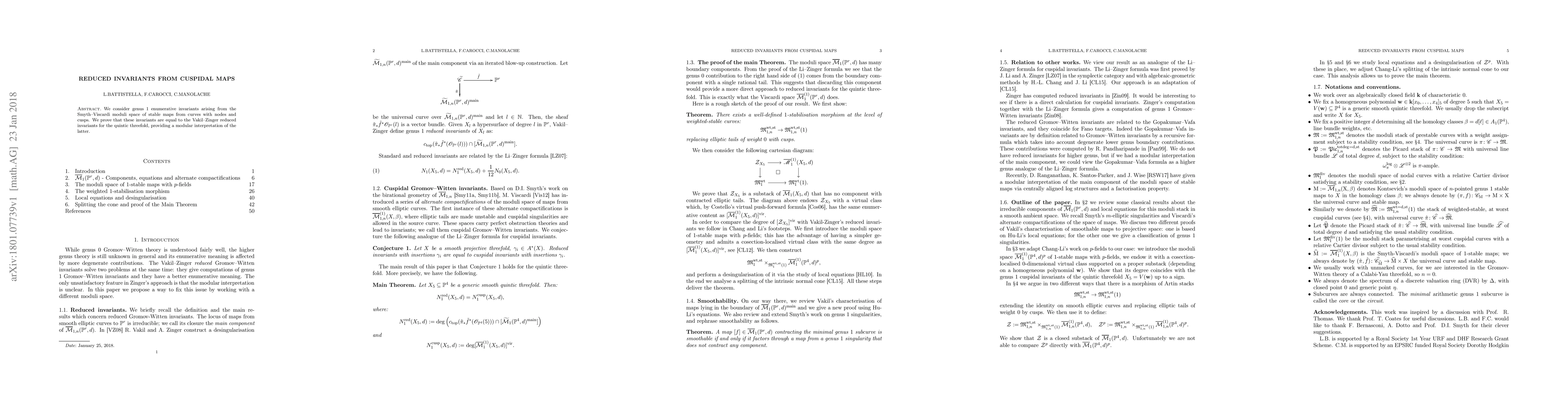 Researchers prove that genus 1 enumerative invariants from stable maps of curves with nodes and cusps are equivalent to reduced invariants for the quintic threefold, providing a modular interpretation.