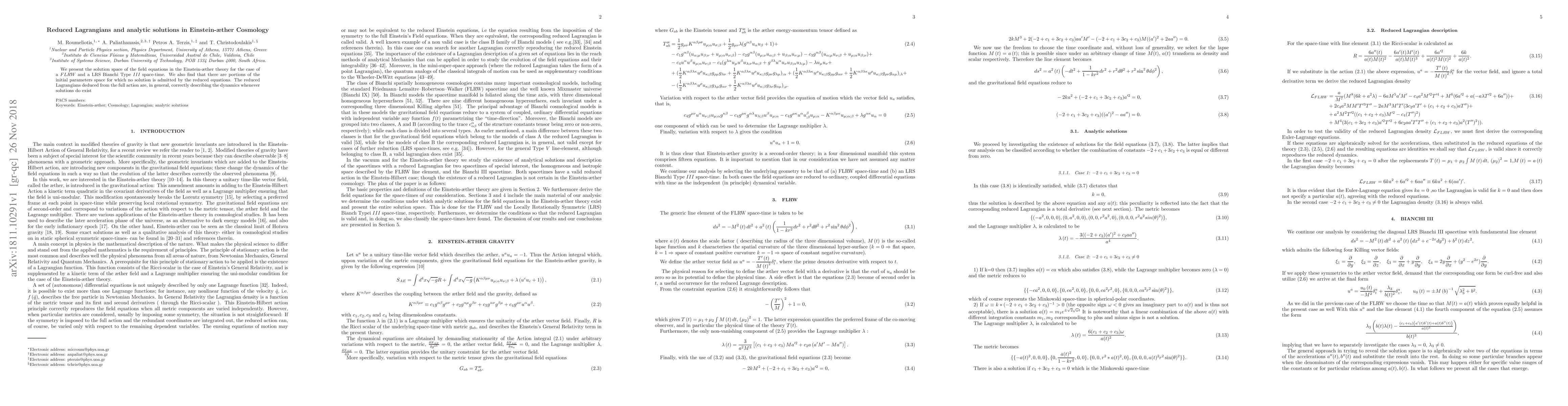 Researchers in Einstein-Áther Cosmology found solutions to the field equations for certain space-time models, but also identified cases where no solution exists. The reduced Lagrangians accurately describe dynamics in these cases.