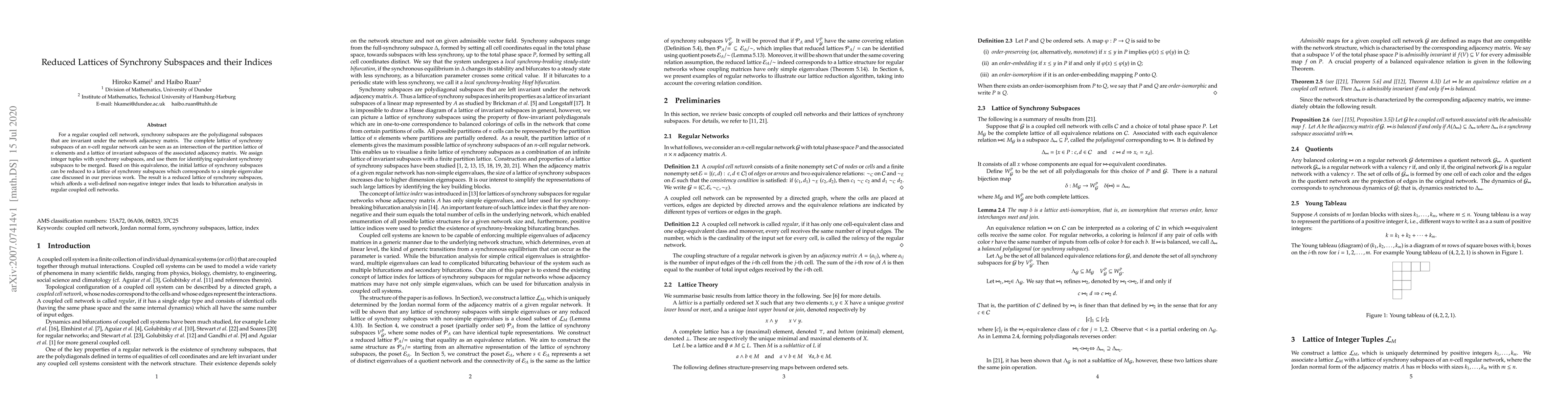 This paper explores the lattice of synchrony subspaces in regular coupled cell networks, reducing it through equivalence identification and assigning indices to facilitate bifurcation analysis. The reduced lattice simplifies the study of network dynamics.