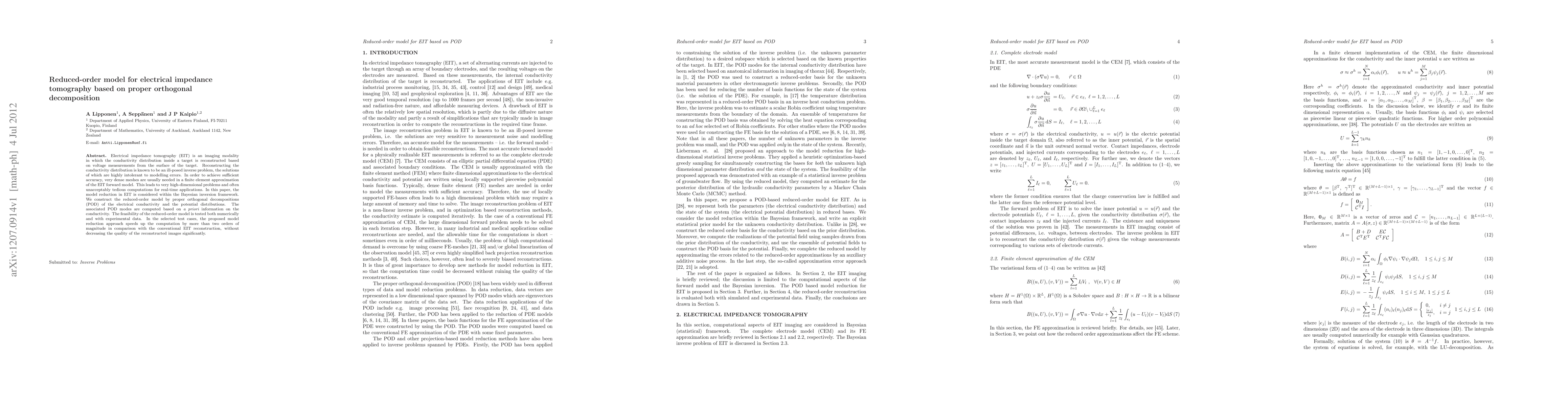 This paper proposes a reduced-order model for electrical impedance tomography (EIT) using proper orthogonal decomposition (POD) to address the high-dimensionality and computational burden of conventional EIT reconstructions. The POD-based model significantly speeds up computations by more than two orders of magnitude while maintaining the quality of the reconstructed images.