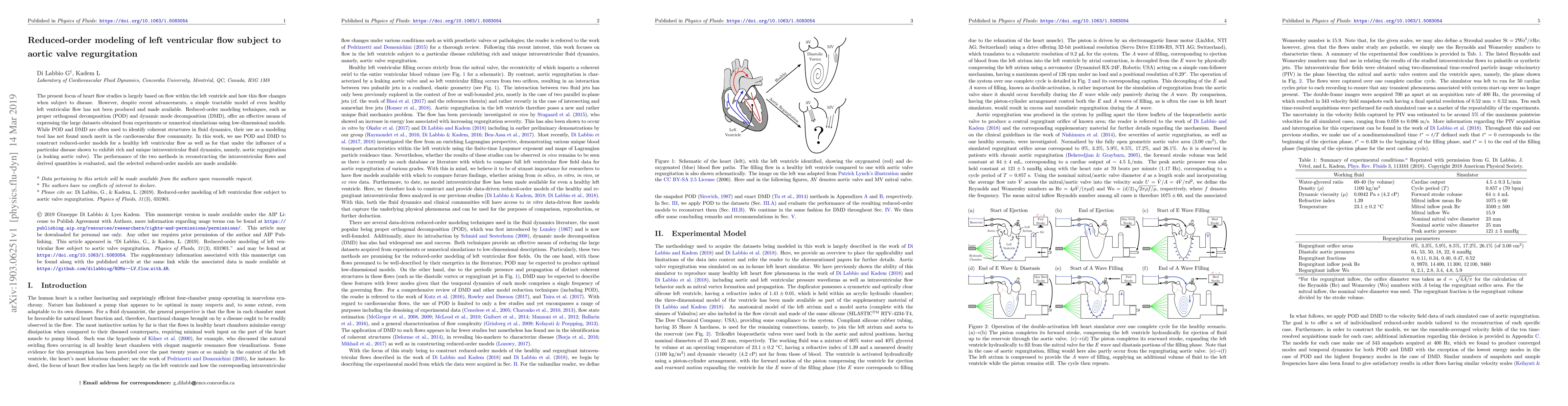 This paper employs proper orthogonal decomposition (POD) and dynamic mode decomposition (DMD) to develop reduced-order models for healthy left ventricular flow and for flow under aortic regurgitation. The study evaluates the effectiveness of these techniques in reconstructing intraventricular flow dynamics and makes the resulting models available for further research.