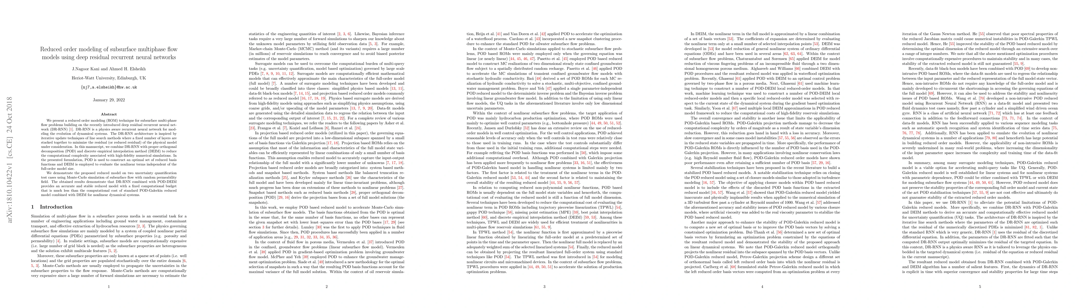The paper presents a novel deep residual recurrent neural network architecture (DR-RNN) for ROM of subsurface multi-phase flow problems, combined with POD and DEIM for efficient computation.