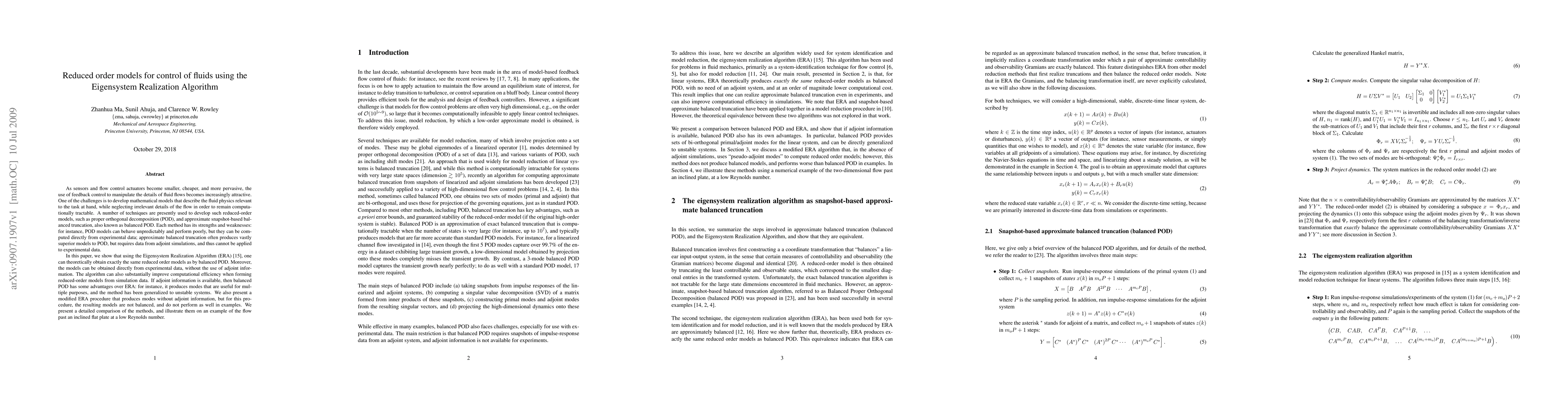 Researchers developed a new method using the Eigensystem Realization Algorithm to create reduced-order models of fluid dynamics that can be built directly from experimental data, offering improved computational efficiency compared to existing techniques like POD.