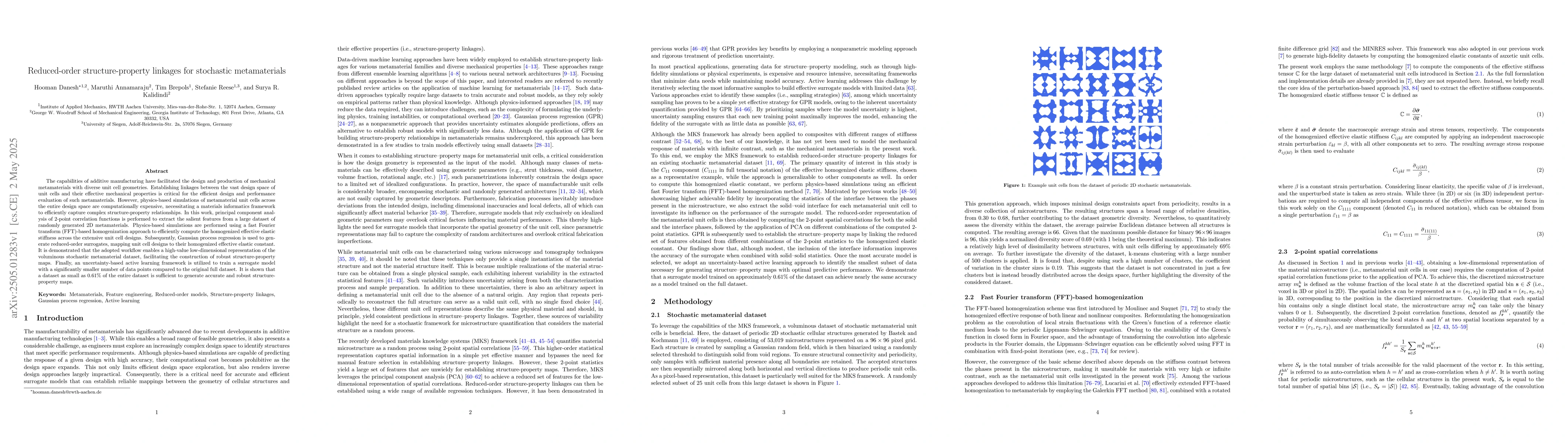 This research paper develops a method to link structure-property relationships in stochastic metamaterials using reduced-order modeling, enabling efficient design and performance evaluation with significantly smaller datasets.