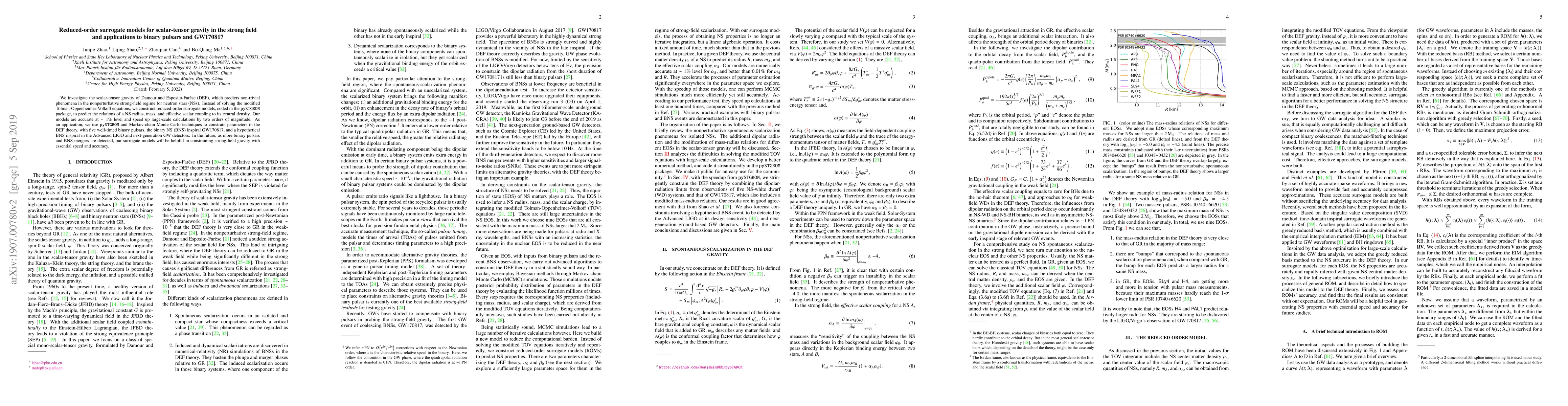 We investigate the scalar-tensor gravity of Damour and Esposito-Far\`ese (DEF), which predicts non-trivial phenomena in the nonperturbative strong-field regime for neutron stars (NSs). Instead of solving the modified Tolman-Oppenheimer-Volkoff equations, we construct reduced-order surrogate models, coded in the pySTGROM package, to predict the relations of a NS radius, mass, and effective scalar coupling to its central density. Our models are accurate at $\sim1\%$ level and speed up large-scale calculations by two orders of magnitude. As an application, we use pySTGROM and Markov-chain Monte Carlo techniques to constrain parameters in the DEF theory, with five well-timed binary pulsars, the binary NS (BNS) inspiral GW170817, and a hypothetical BNS inspiral in the Advanced LIGO and next-generation GW detectors. In the future, as more binary pulsars and BNS mergers are detected, our surrogate models will be helpful in constraining strong-field gravity with essential speed and accuracy.