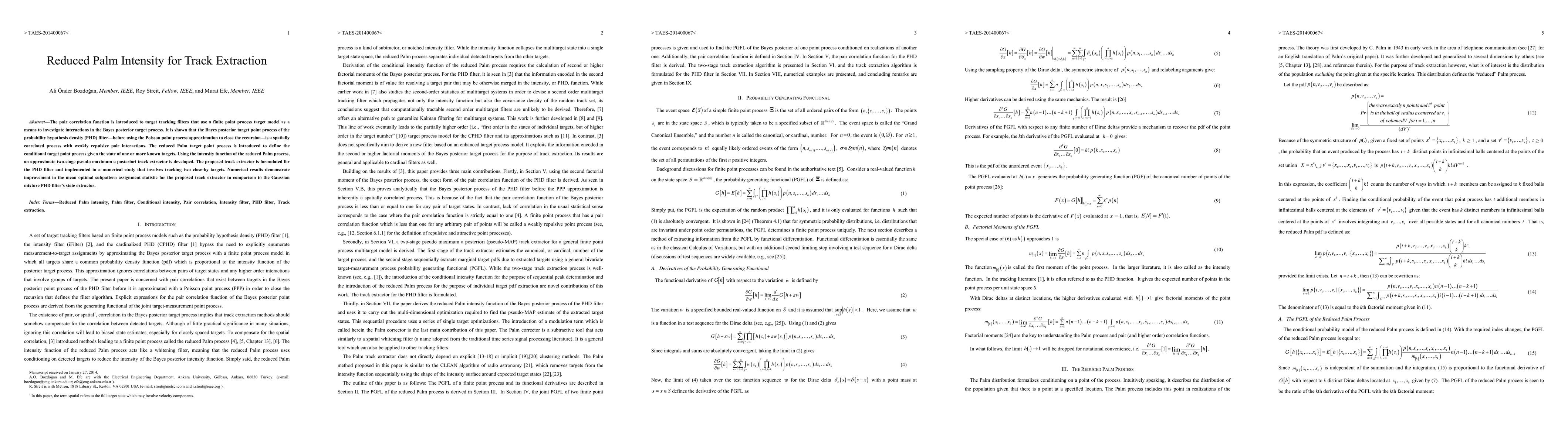 This paper introduces the reduced Palm intensity function to improve track extraction in tracking filters using a finite point process target model. An approximate two-stage pseudo maximum a posteriori track extractor is developed, showing better performance in tracking two close-by targets compared to the Gaussian mixture PHD filter.