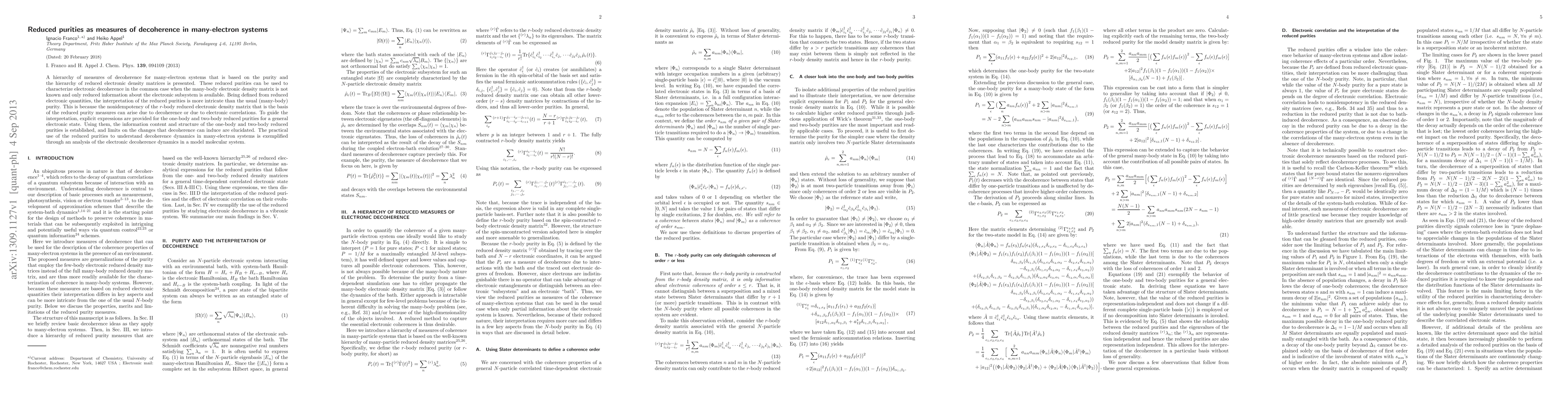 This paper introduces a hierarchy of reduced purities to measure decoherence in many-electron systems, where reduced electronic density matrices are used when full many-body information is unavailable. It provides explicit expressions and analyzes the implications of these reduced purities to distinguish decoherence from electronic correlations.