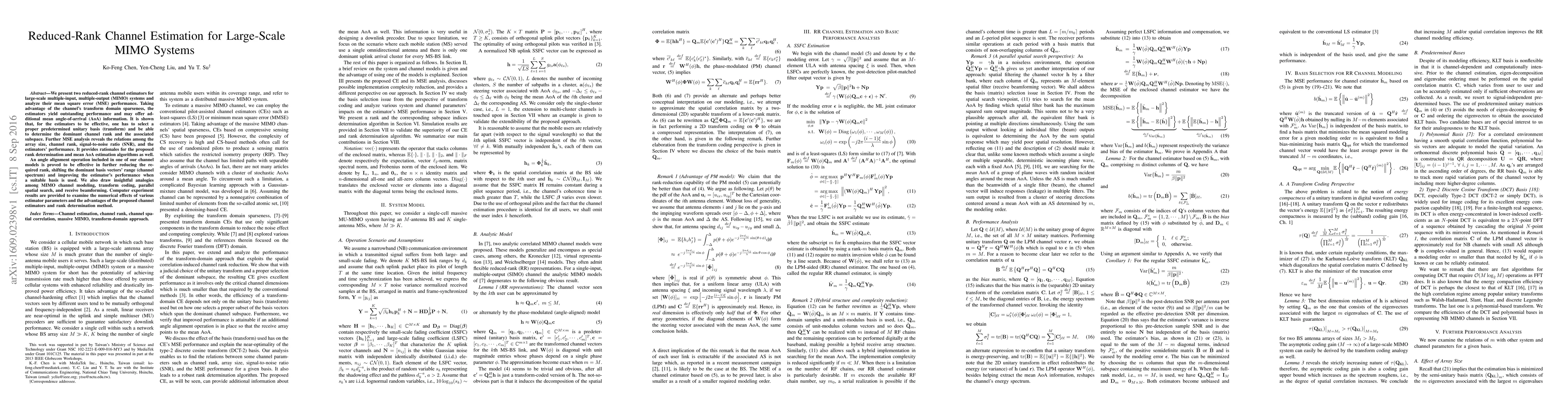 We present two reduced-rank channel estimators for large-scale multiple-input, multiple-output (MIMO) systems and analyze their mean square error (MSE) performance. Taking advantage of the channel's transform domain sparseness, the estimators yield outstanding performance and may offer additional mean angle-of-arrival (AoA) information. It is shown that, for the estimators to be effective, one has to select a proper predetermined unitary basis (transform) and be able to determine the dominant channel rank and the associated subspace. Further MSE analysis reveals the relations among the array size, channel rank, signal-to-noise ratio (SNR), and the estimators' performance. It provides rationales for the proposed rank determination and mean AoA estimation algorithms as well. An angle alignment operation included in one of our channel models is proved to be effective in further reducing the required rank, shifting the dominant basis vectors' range (channel spectrum) and improving the estimator's performance when a suitable basis is used. We also draw insightful analogies among MIMO channel modeling, transform coding, parallel spatial search, and receive beamforming. Computer experiment results are provided to examine the numerical effects of various estimator parameters and the advantages of the proposed channel estimators and rank determination method.