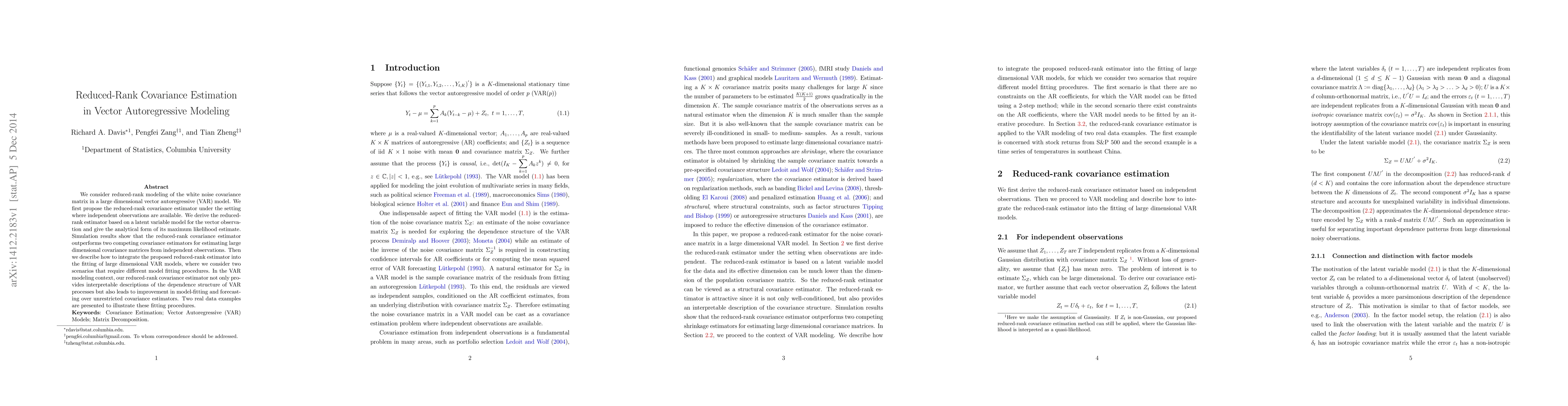 This paper proposes a reduced-rank covariance estimator for large dimensional vector autoregressive (VAR) models, demonstrating its superior performance over competing methods through simulations. The estimator is integrated into VAR model fitting, showing improved interpretability and forecasting accuracy, as evidenced by real data examples.