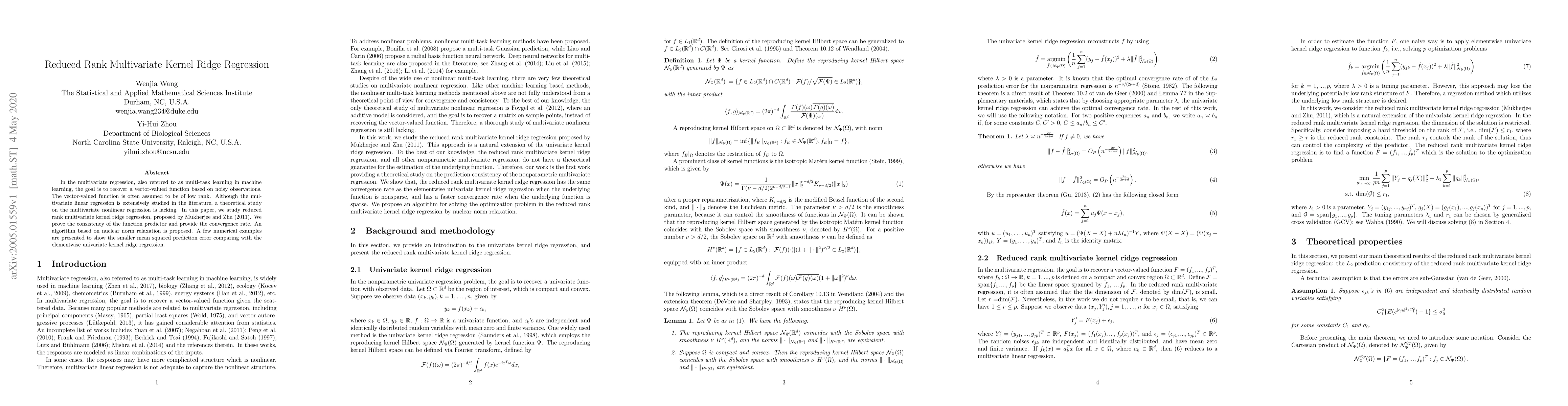 This paper investigates reduced rank multivariate kernel ridge regression, proving its consistency and convergence rate. It introduces an algorithm based on nuclear norm relaxation and demonstrates its effectiveness through numerical examples, showing it outperforms univariate kernel ridge regression in mean squared prediction error.